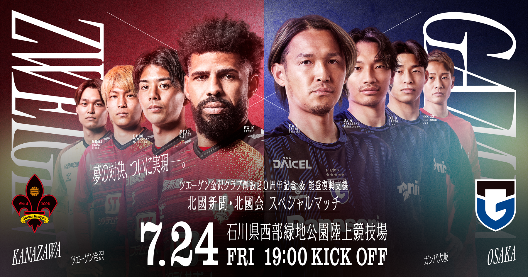 このようにガンバ大阪は、金沢・石川での試合開催を通じて地域に多くのサポーターを生み、長年にわたり深いご縁を築いてきたクラブです。今回の対戦は、そうした歴史への感謝と、20周年を迎えるツエーゲン金沢の新たな歩みを象徴する特別な一戦となります。