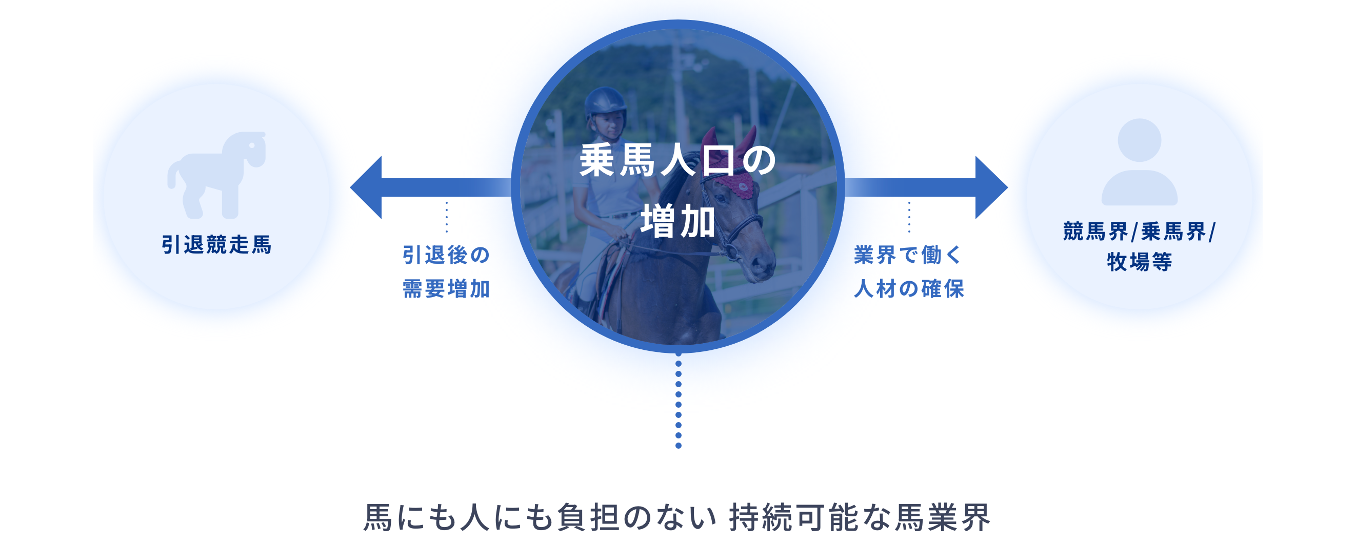 日本乗馬普及協会では乗馬の普及活動のほか、引退競走馬のセカンドキャリア支援も行っています。現在、日本乗馬普及協会では競馬を引退したサラブレッドが”乗用馬”として持続的に活躍できるようにリトレーニング等の継続的な支援を行っています。