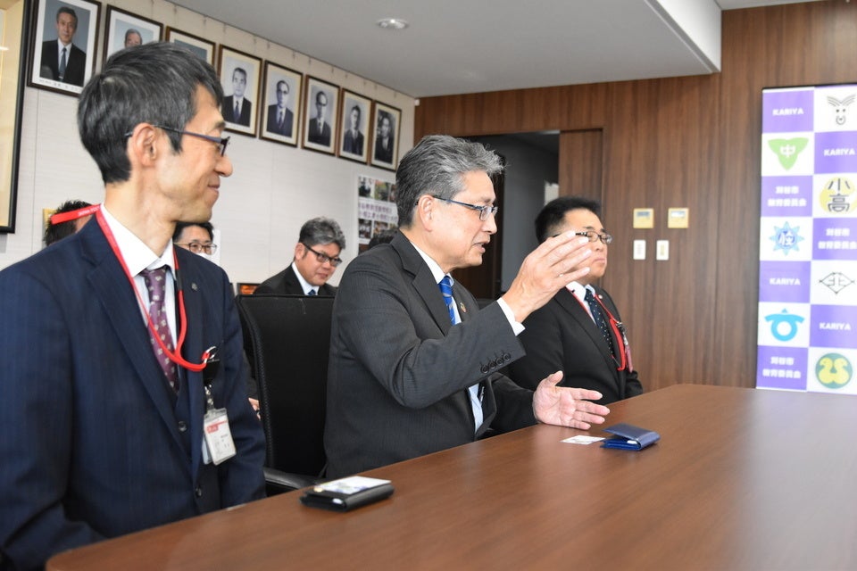 当日は、刈谷市教育長へエコ定規とクリアファイルが贈呈され、子どもたちの健やかな成長や、スポーツを通じた地域の活性化への想いが共有されました。