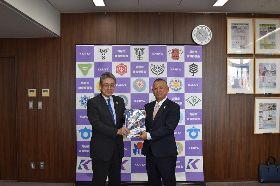 当日は、刈谷市教育長へエコ定規とクリアファイルが贈呈され、子どもたちの健やかな成長や、スポーツを通じた地域の活性化への想いが共有されました。