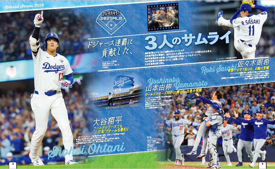 大谷翔平選手、山本由伸投手、佐々木朗希投手――2025年のワールドシリーズでドジャース連覇に貢献した3人の日本人選手に注目! まだ記憶に新しい、白熱のワールドシリーズを写真で振り返ります。