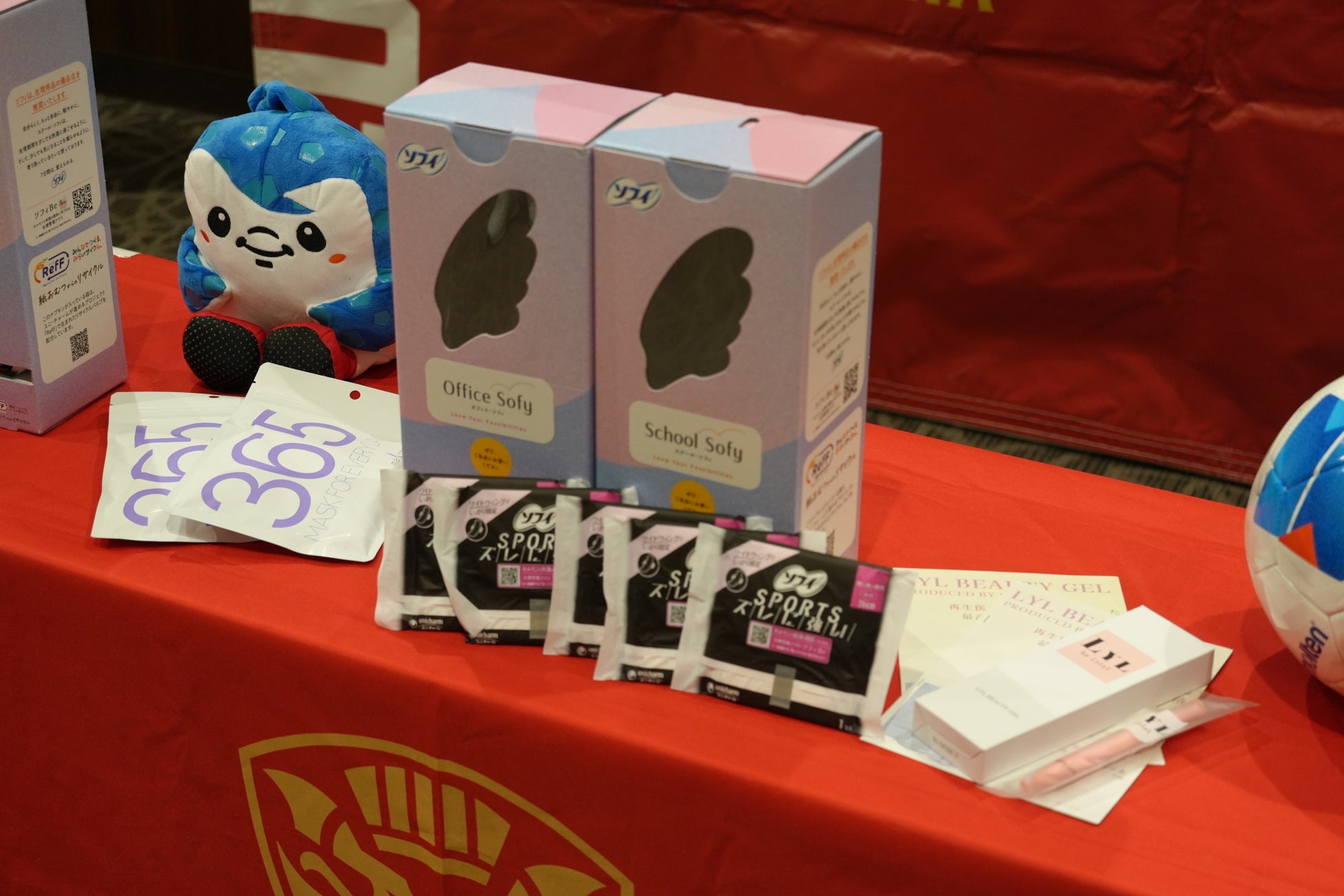 イベントでは会見も実施し、4月より、FC琉球のホームスタジアムである沖縄県総合運動公園陸上競技場(沖縄市)と、FC琉球さくらのホームゲーム会場である東風平運動公園サッカー場(八重瀬町)のトイレにユニ・チャーム「どこでもソフィ」プロジェクトの生理用ナプキンディスペンサーの設置開始を発表いたしました。来場された観客の皆様が必要な時にご利用いただくことで、より安心してサッカー観戦を楽しめる環境が実現します。