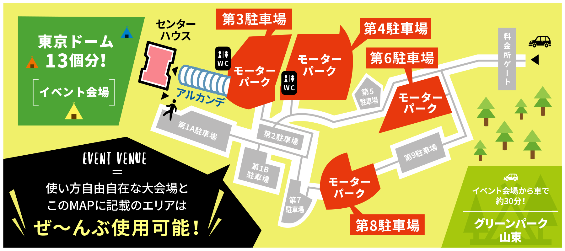 奥伊吹モーターパーク&イベント会場(https://www.okuibuki.co.jp/green/)として、JAF公認(JAFスピード行事競技コース)を取得している第4駐車場を中心に走行会場を貸出し。全10ヵ所ある駐車場全面を使用したイベントや、私有地の周回道路を利用した1.5kmの周回コース等、様々な場所を活用し、車、バイクでのドリフトやジムカーナの走行会を受付けています。