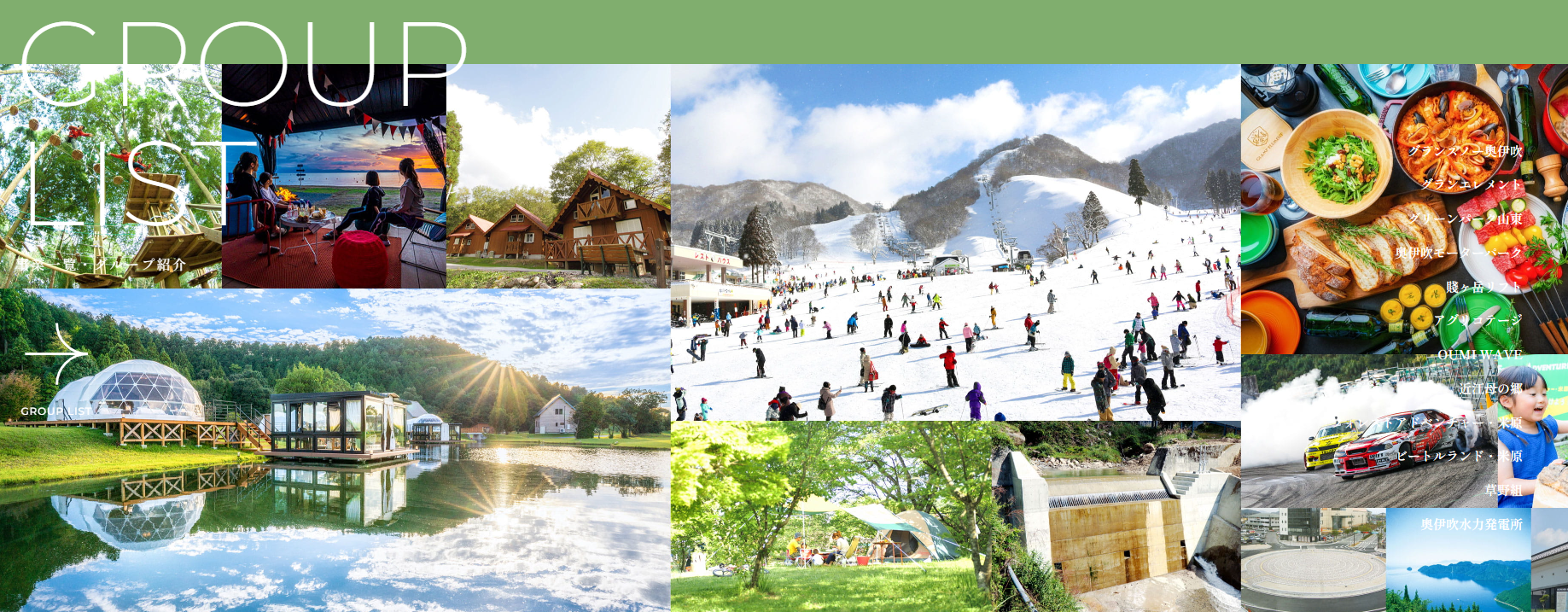 滋賀県米原市・長浜市を拠点に観光・レジャー施設を運営する企業グループとして、グランスノー奥伊吹のスキー場運営を中心に、アウトドアのレジャー施設・観光・地域活性化事業を含めて12施設展開し、冬季のみならず四季型リゾート事業としてスキー場・キャンプ場・グランピング施設・アクティビティ・モーターパーク・旅館・道の駅・水力発電所など多角的な事業展開を行っています。