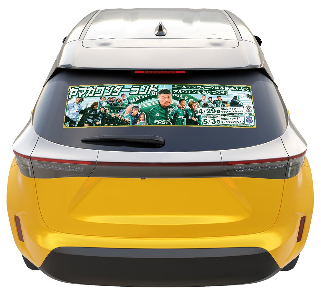 「松本山雅FC」は、長野県松本市を本拠地とするサッカークラブです。松本山雅FCのカーステッカーデザインを車に貼っていただき、普段の日常やお出かけの際のドライブで松本山雅FCの応援にご協力ください。