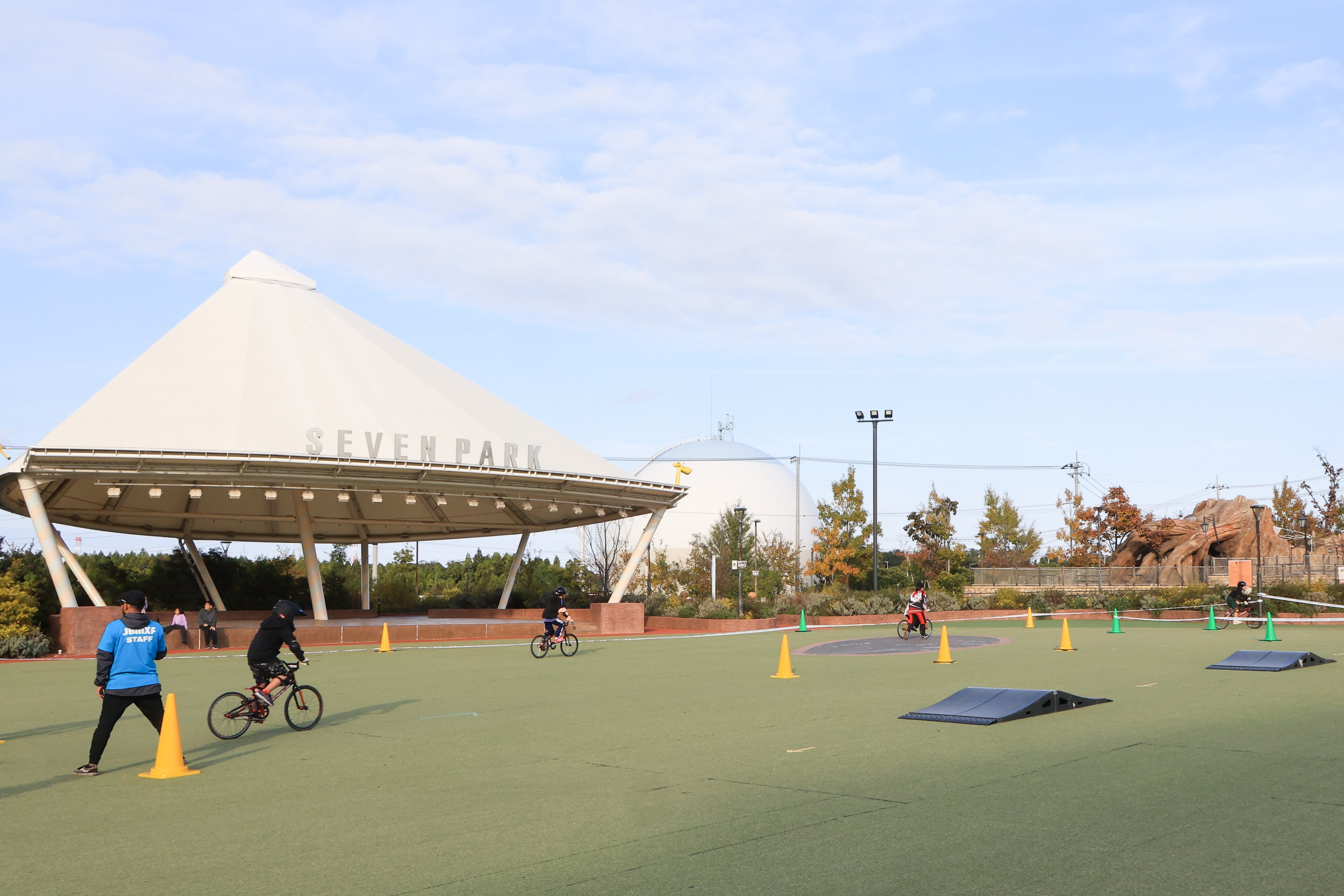 スマイルパークにパンプトラックを配置した特設試乗コースを設置いたします。試乗車はサイズ別に用意し、ヘルメットやプロテクターもお貸し出しいたしますので、安心して体験を楽しむことができます。