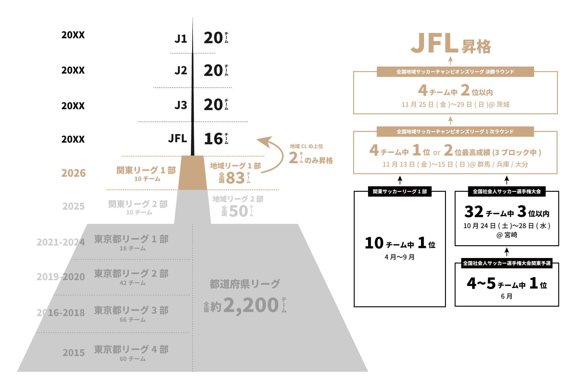 関東サッカーリーグ1部に所属する同クラブは、JFL昇格という極めて狭き門(約2%)に挑戦しています。この厳しい戦いに対し、選手だけでなく、ファン・スポンサー・街の人々の“決意”を一つのビジュアルとして集約し、渋谷センター街の中心に掲出しました。