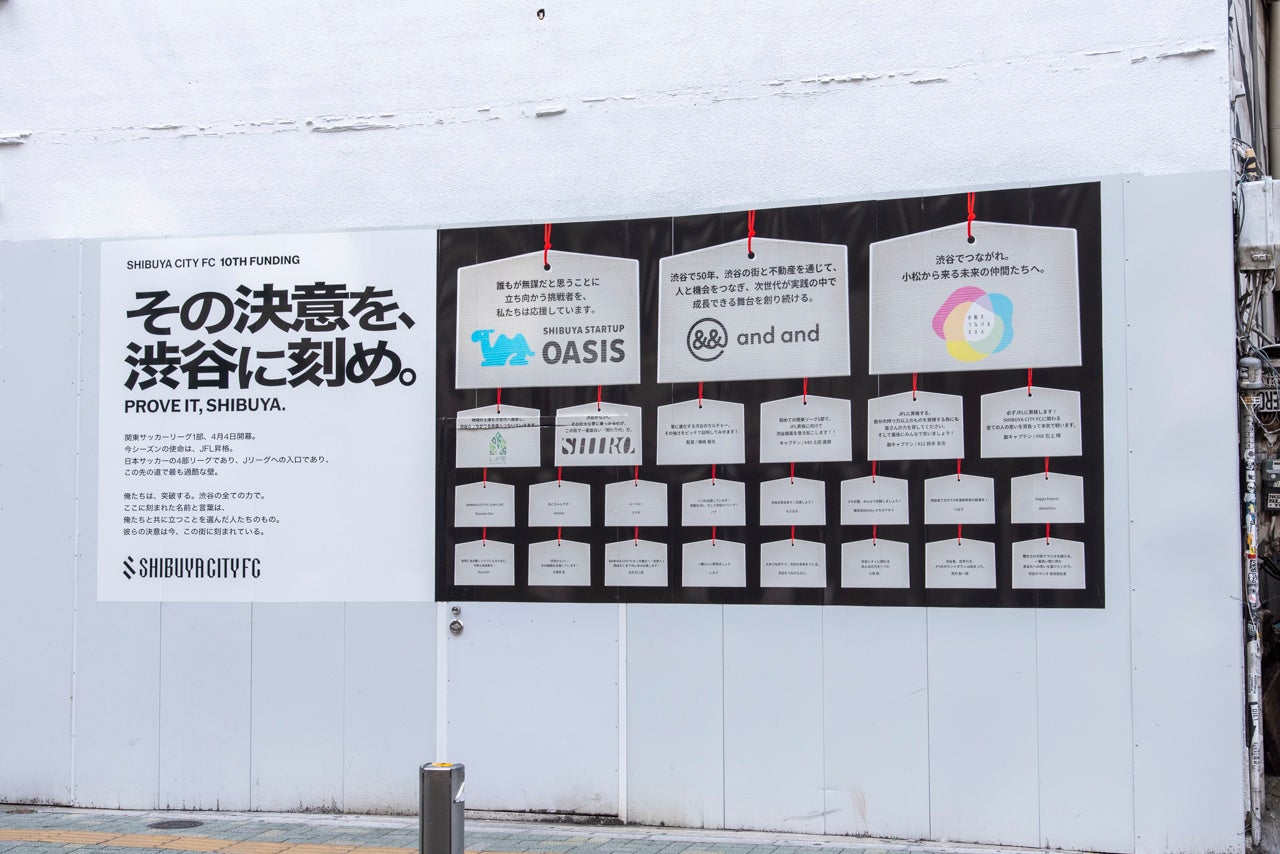 関東サッカーリーグ1部に所属する同クラブは、JFL昇格という極めて狭き門(約2%)に挑戦しています。この厳しい戦いに対し、選手だけでなく、ファン・スポンサー・街の人々の“決意”を一つのビジュアルとして集約し、渋谷センター街の中心に掲出しました。