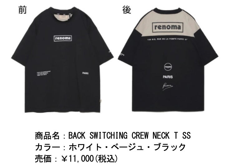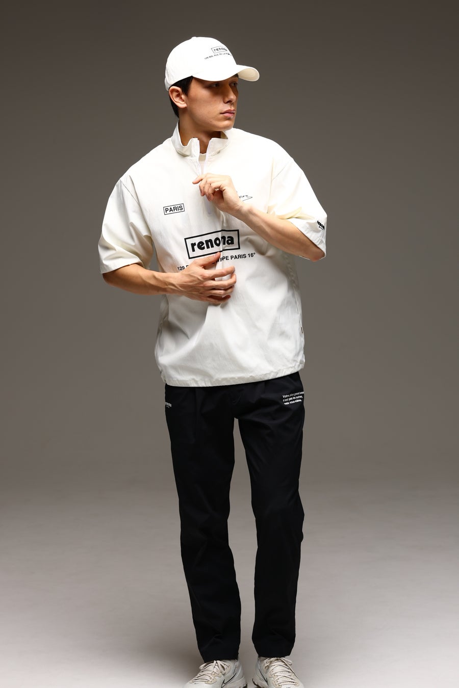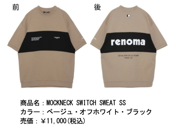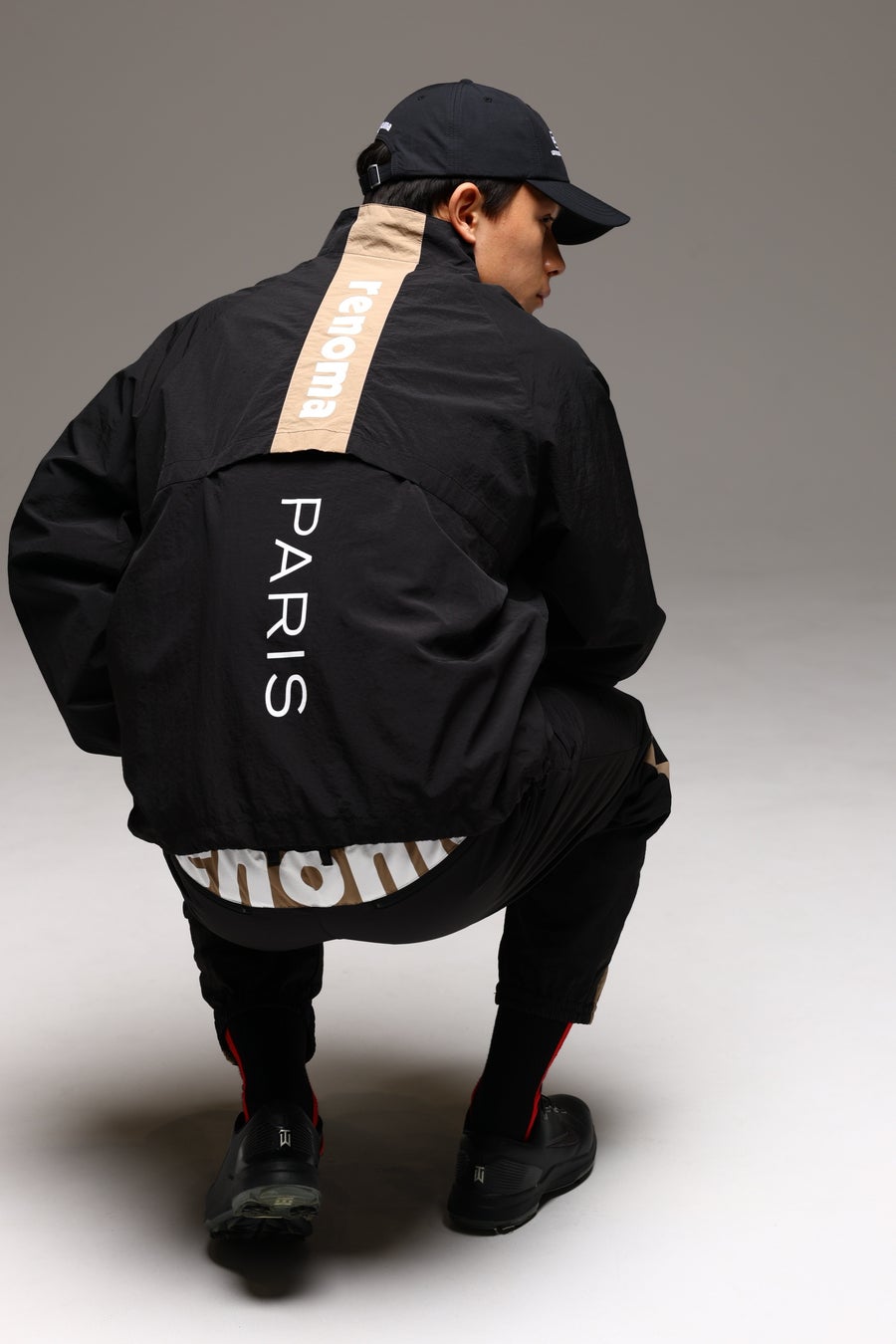 カラーはシックなモノトーンやベージュを基調としながらも、タイポグラフィやバイカラーの切り替えによって、既存のゴルフウェアにはない「renoma PARIS」らしいエスプリとストリート感を融合させています。