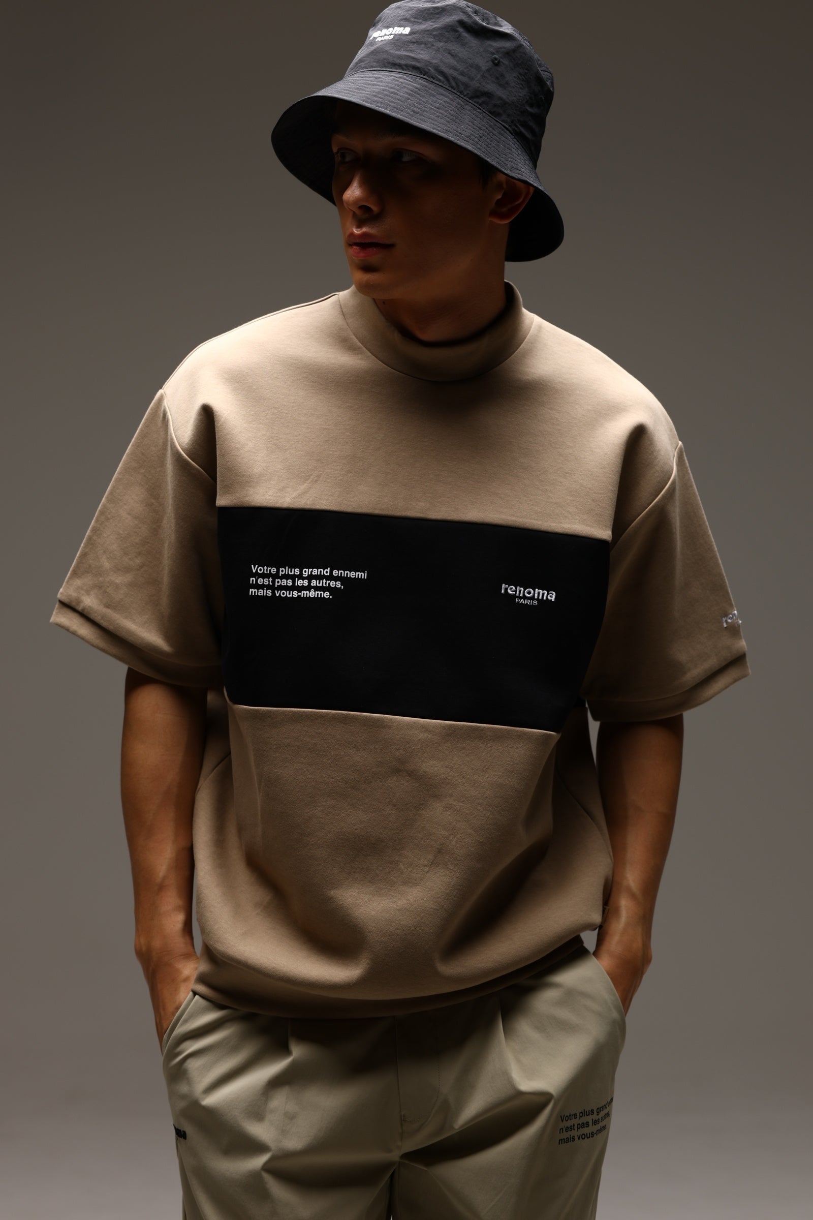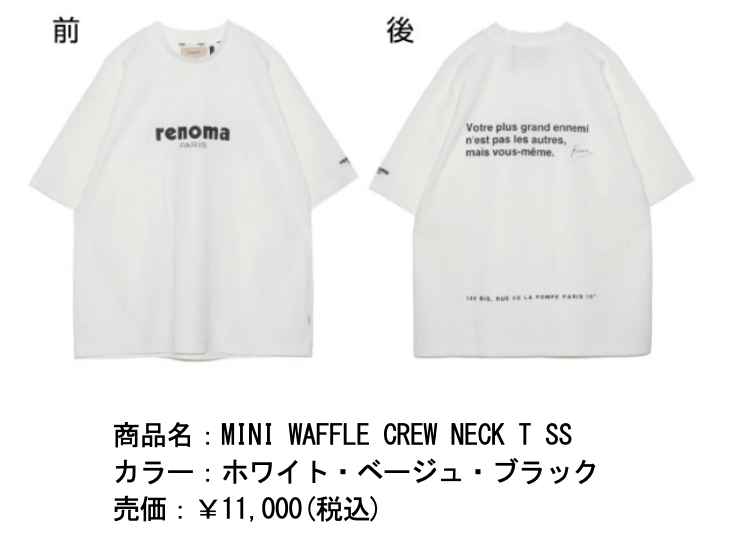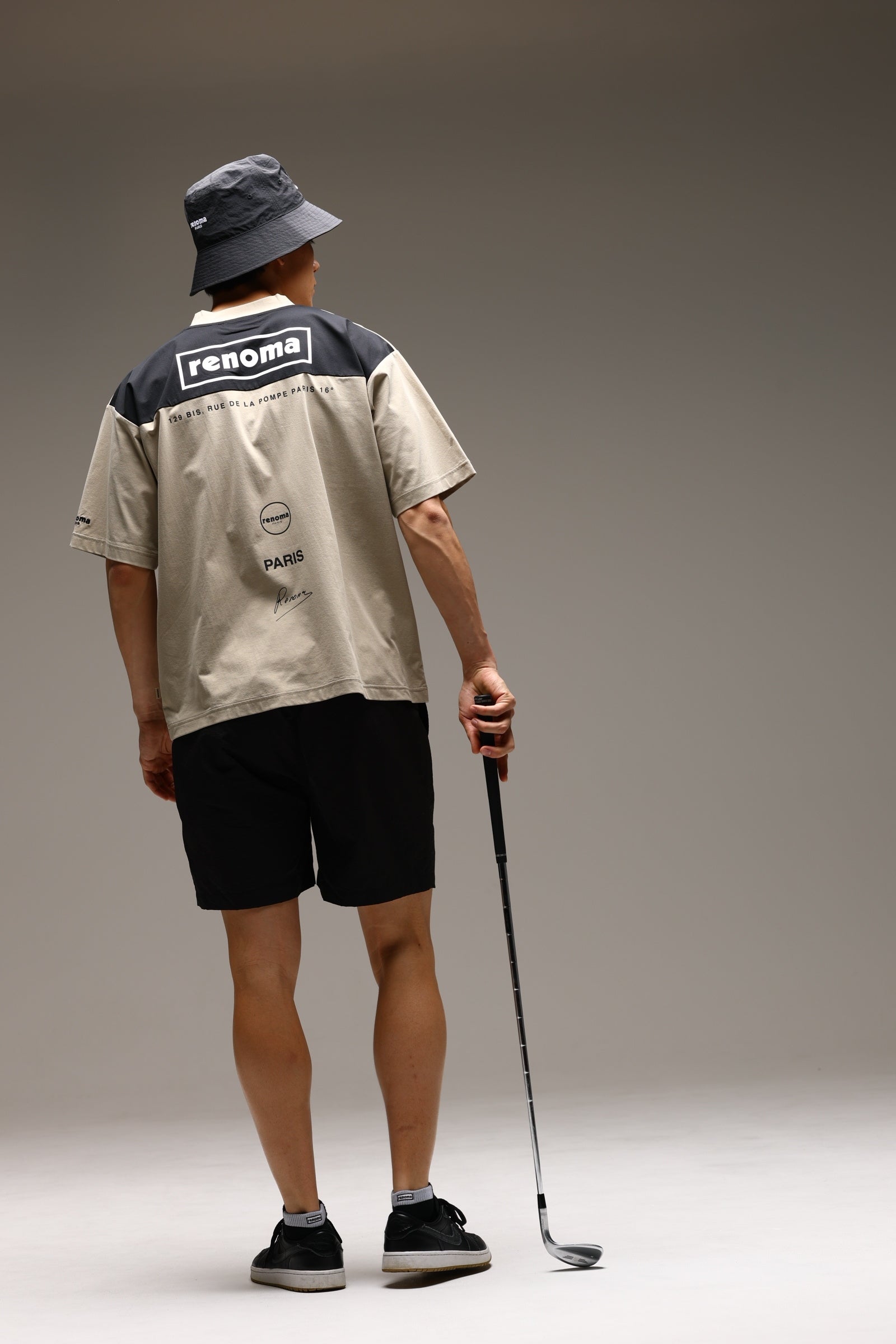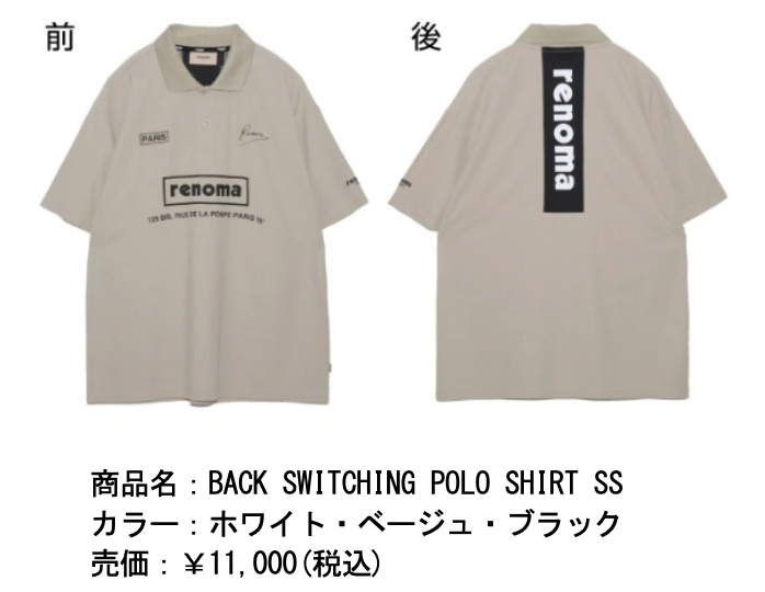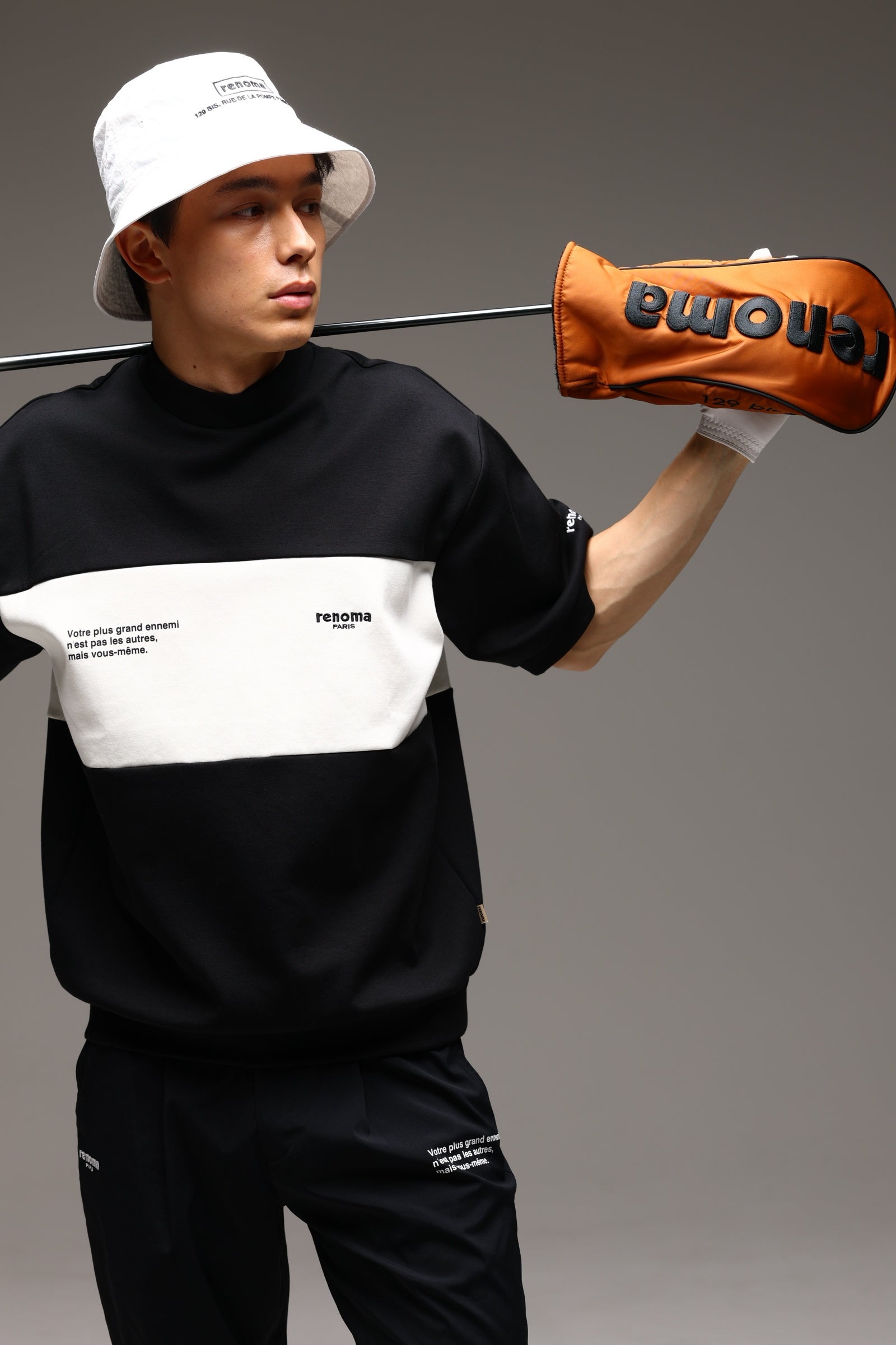 カラーはシックなモノトーンやベージュを基調としながらも、タイポグラフィやバイカラーの切り替えによって、既存のゴルフウェアにはない「renoma PARIS」らしいエスプリとストリート感を融合させています。