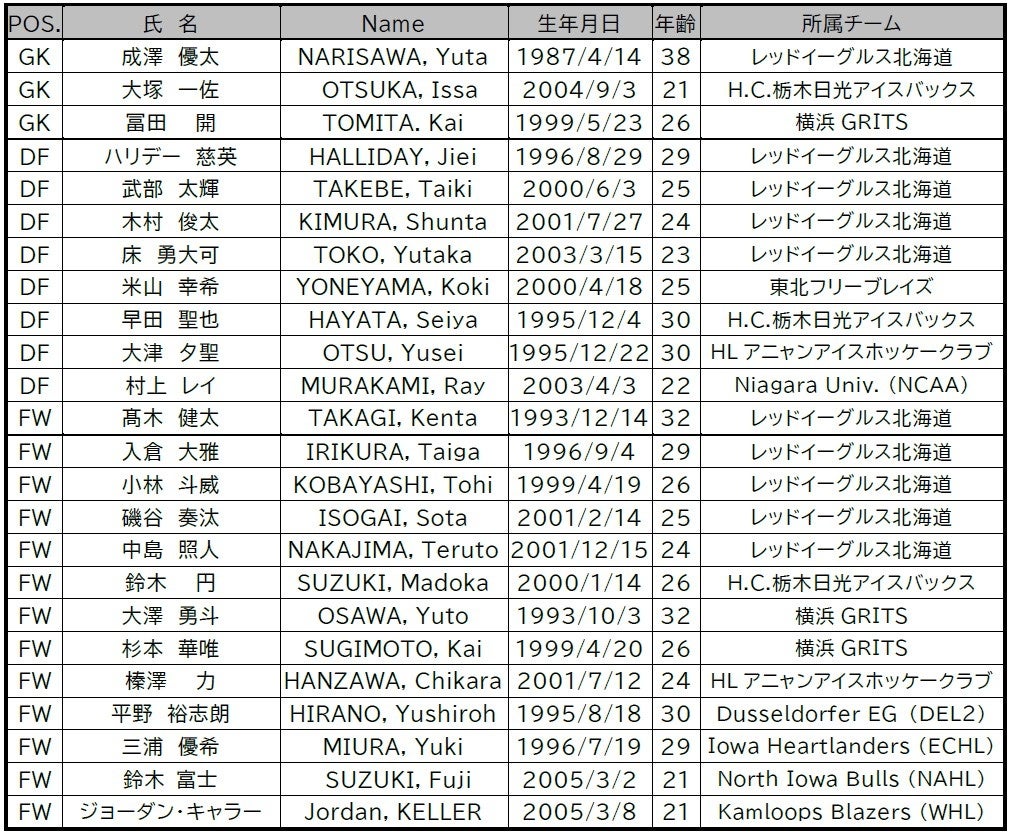 参加国 : 男子日本代表(IIHF世界ランキング20位)