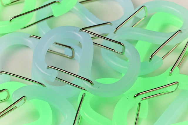 蓄光グリーンと蓄光ブルーの2色を展開(明るい場所で撮影しています。)