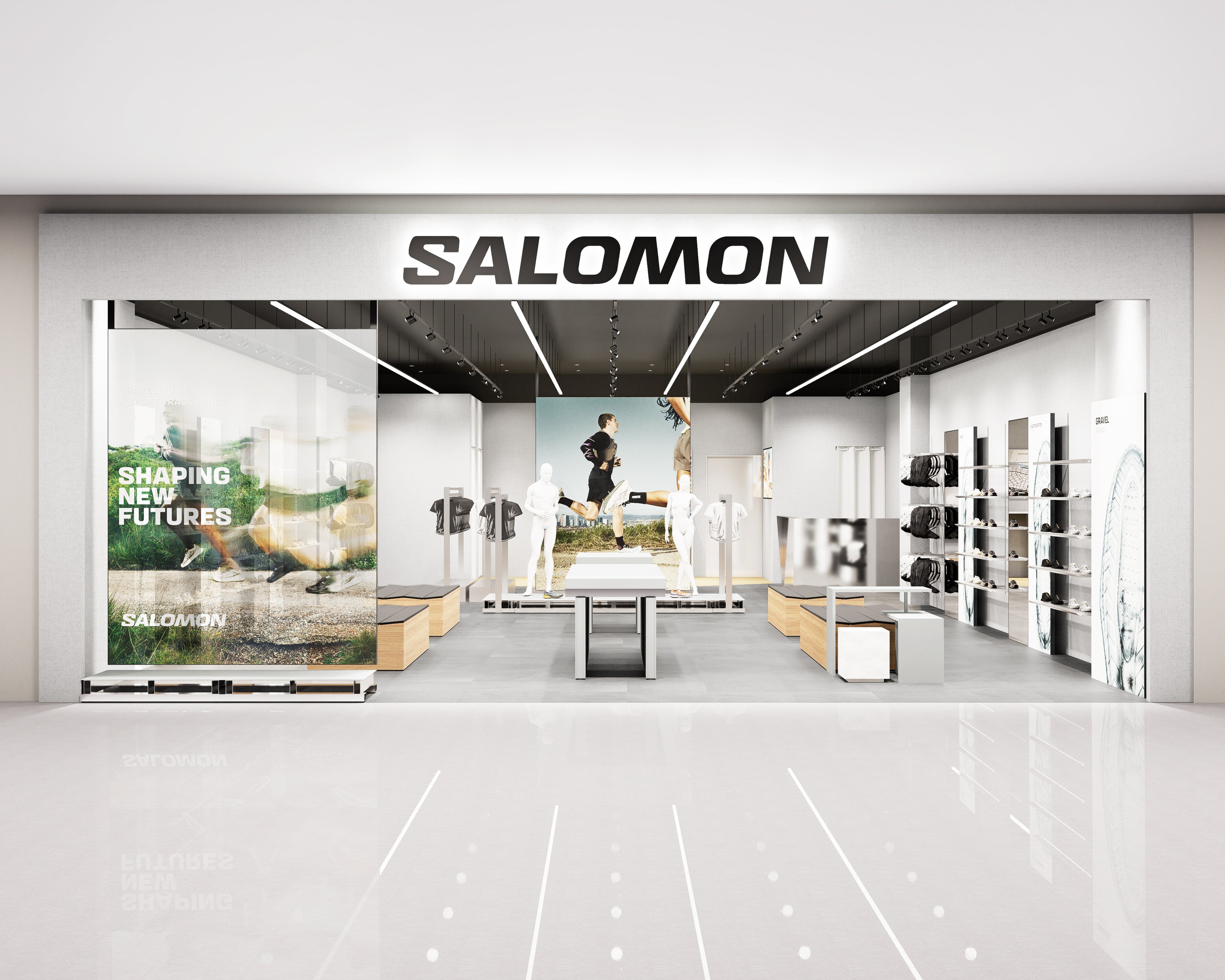 サロモンストア ららぽーとEXPOCITY(エキスポシティ)店では、フィールドパフォーマンスを追求し洗練されたデザインと機能性を備えるパフォーマンスカテゴリーのシューズを中心に、アパレルやバックパック、アパレルアクセサリなど豊富なプロダクトラインナップで展開致します。店内ではロッカーと試し履きのできるテストシューズを常設するなどコミュニティスペースとしての役割も備え、これらを活かした定期的なコミュニティランニングなども開催予定となっております。万博記念公園隣接の特別な空間を是非ご体感ください。