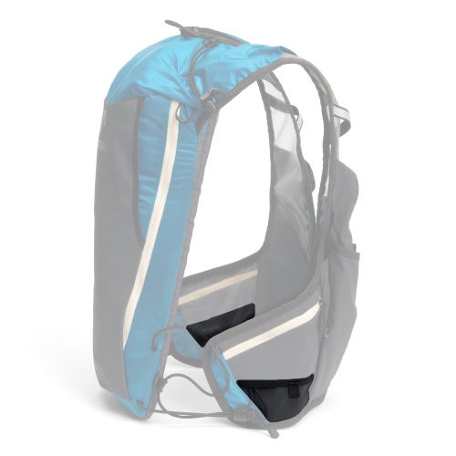 ハイドレーションパックは、背中との接地面の専用ポケットに収納可能。サスペンションシステムにより、水量が減っても身体と密着した圧縮状態が保たれ、走行中の水の揺れによる走行リズムの乱れを抑えます。ハイドレーションホースは左右の肩どちらからでも通すことができます。