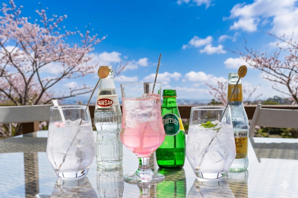 ◆桜ジントニック ¥1,800 ◆桜ジンソーダ ¥1,300 ◆桜ウォーター(ノンアルコール)¥1,000 熱海の蒸留所で造られたプレミアムなドライジン「SEACLIFF」を使用し、桜のリキュールで春を演出したオリジナルカクテル3種です。キリッとしたジンの風味に、桜リキュールの繊細な香りと淡いピンク色が溶け込んだ、春を象徴する一杯です。