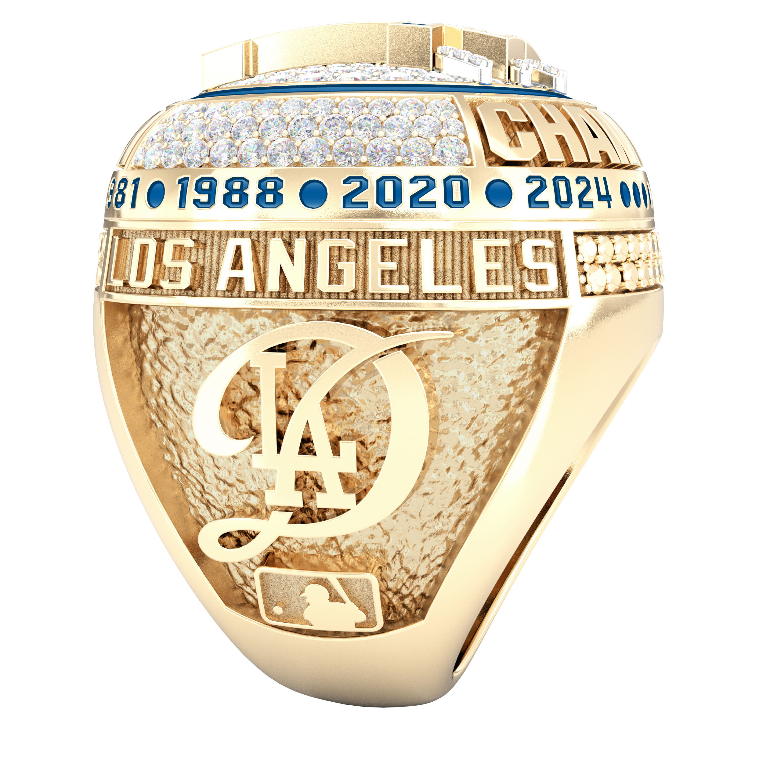 リングトップには、勝利を象徴する「WORLD CHAMPIONS」の文字を計139個のダイヤモンドで表現し、中心にはドジャースが頂点に立った証として特別なダイヤモンドを配置。王者としての輝きを細部に至るまで表現しています。
