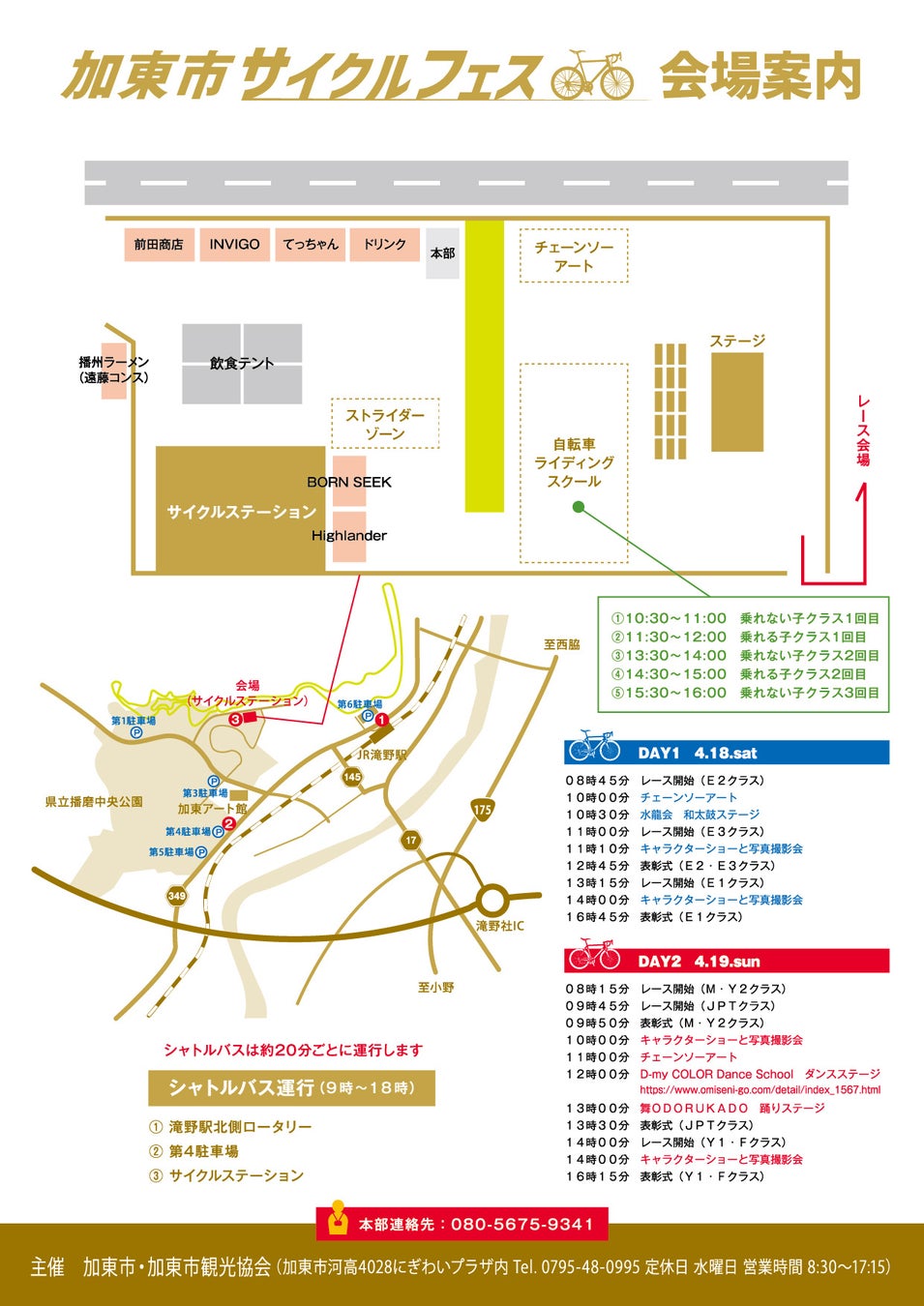 自転車レースのほかにも、4月18日(土)は和太鼓ステージ・名探偵プリキュア!ショー、4月19日(日)はダンスステージ・踊りステージ・レジェンド仮面ライダーショーといったステージイベント、また2日通してチェーンソーアートやライディングスクールも開催します。