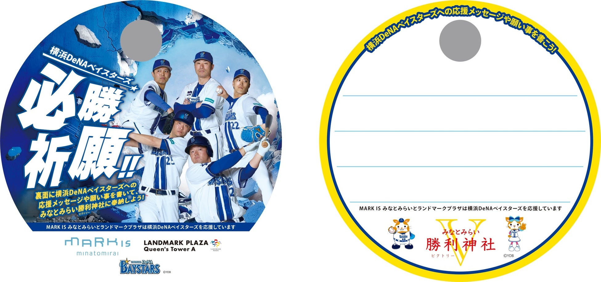 MARK IS みなとみらい 1階 グランドガレリアに建立されている「みなとみらい勝利神社」(読み:ビクトリーじんじゃ)では、新シーズンの開幕に合わせて、限定デザインの必勝祈願絵馬をご用意します。横浜DeNAベイスターズのリーグ優勝・日本一への願いはもちろん、スポーツの大会や受験など“勝負”に挑む皆さまの祈願メッセージを記して奉納いただけます。