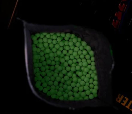 光を蓄えて暗闇で発光するBB弾のことで、夜間のサバイバルゲームやインドアフィールドで、弾道やヒットの判別を容易にするために使われます。使用するには、発射前に「トレーサー」と呼ばれる発射装置で光を当てる必要があり、まるでレーザーのように光る弾道を楽しむことができます。