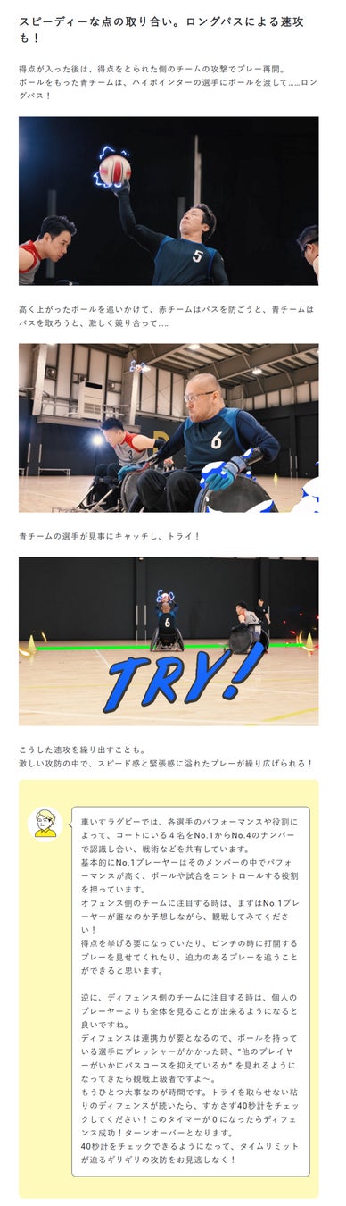 テレビドラマの放送を控え、今まさに注目が集まる車いすラグビー。本作では、現役選手による迫力満点の動画に加え、テレビドラマで選手の所作・競技シーンの監修も務めた峰島靖さんが競技の醍醐味をWEB記事で徹底解説。競技の醍醐味・奥深さを、初心者からファンまで楽しめる内容でお届けします。