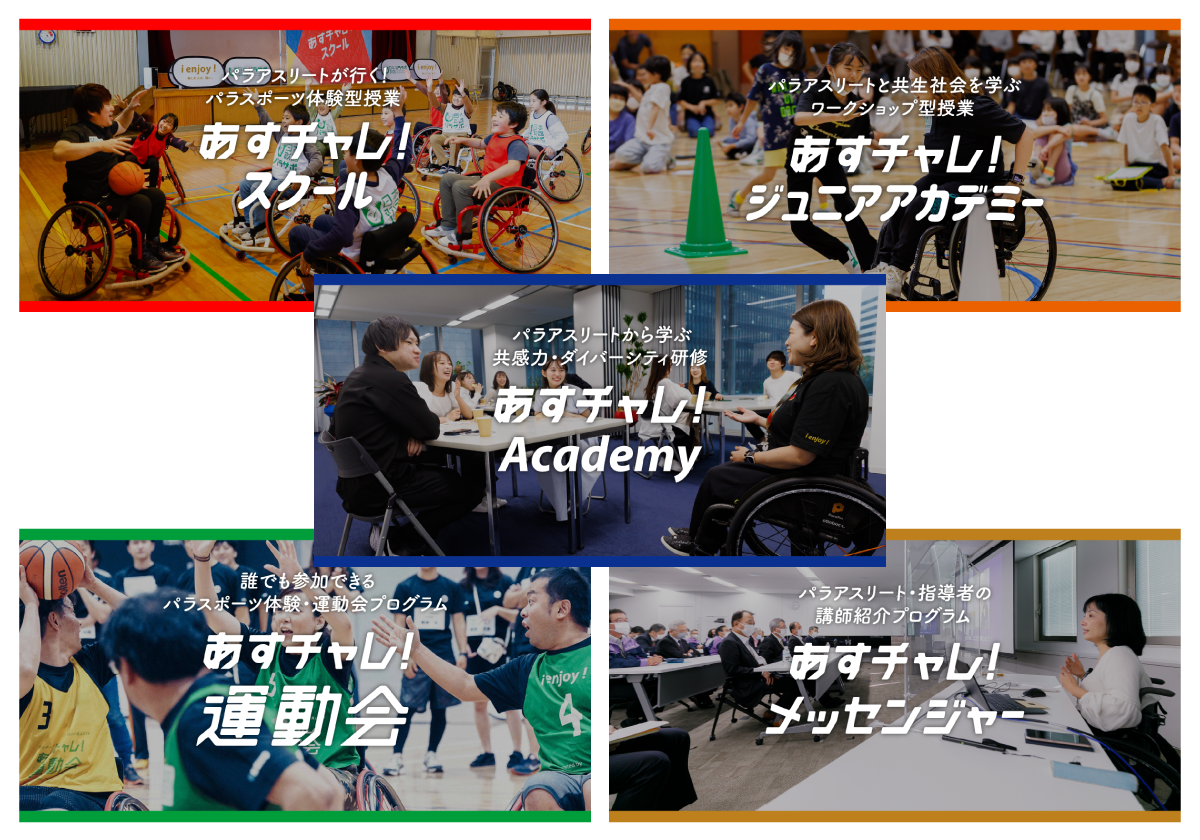 パラアスリートを中心とした講師が行う小・中・高・特別支援学校向けの教育プログラム、企業・団体・自治体・大学等向けの研修プログラム「あすチャレ!」は、2016年度から2025年度末までに国内外で6,470回開催、子どもから大人まで65.9万人が参加しています。