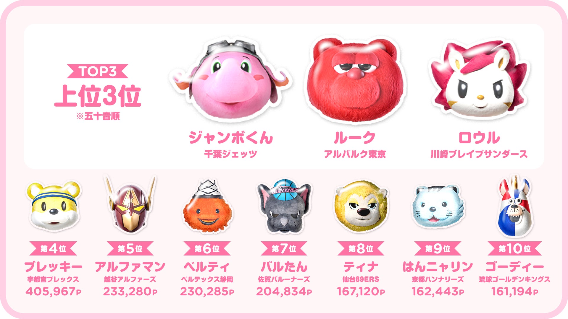 今後は上位3位マスコットによる決戦投票の戦いが待っており、決選投票を実施後に5月下旬開催予定の「B.LEAGUE AWARD SHOW 2025-26」で最終順位が発表されます。