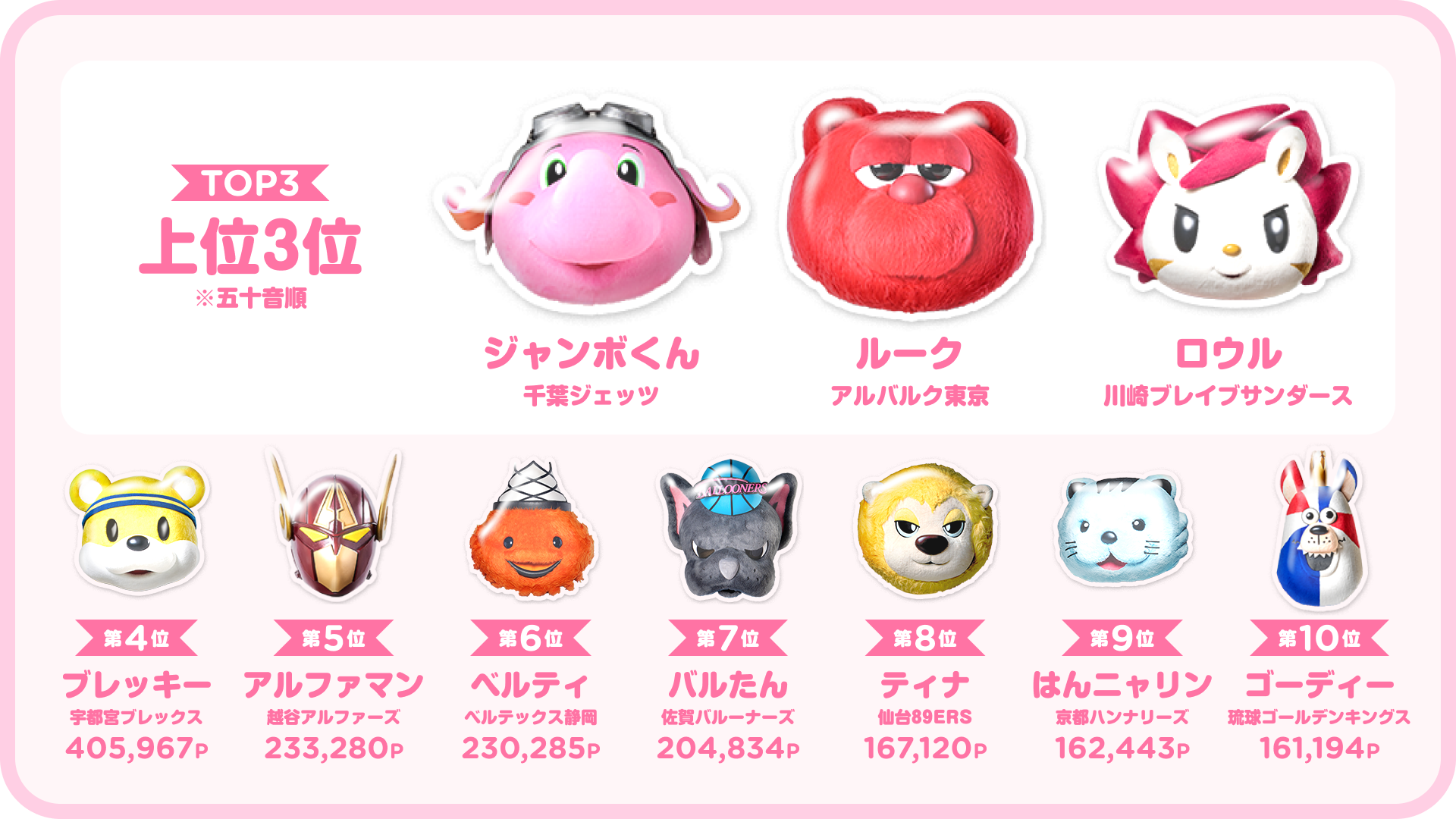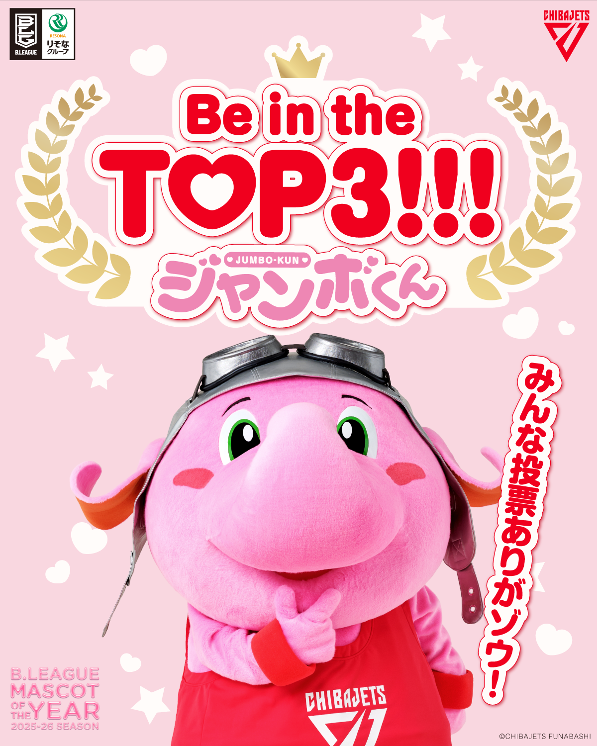 3/19(木)より4/5(日)まで開催された「マスコットオブザイヤー 2025-26」(ファン投票)で千葉ジェッツの「ジャンボくん」が 【TOP3】 入りをしましたのでお知らせいたします。
