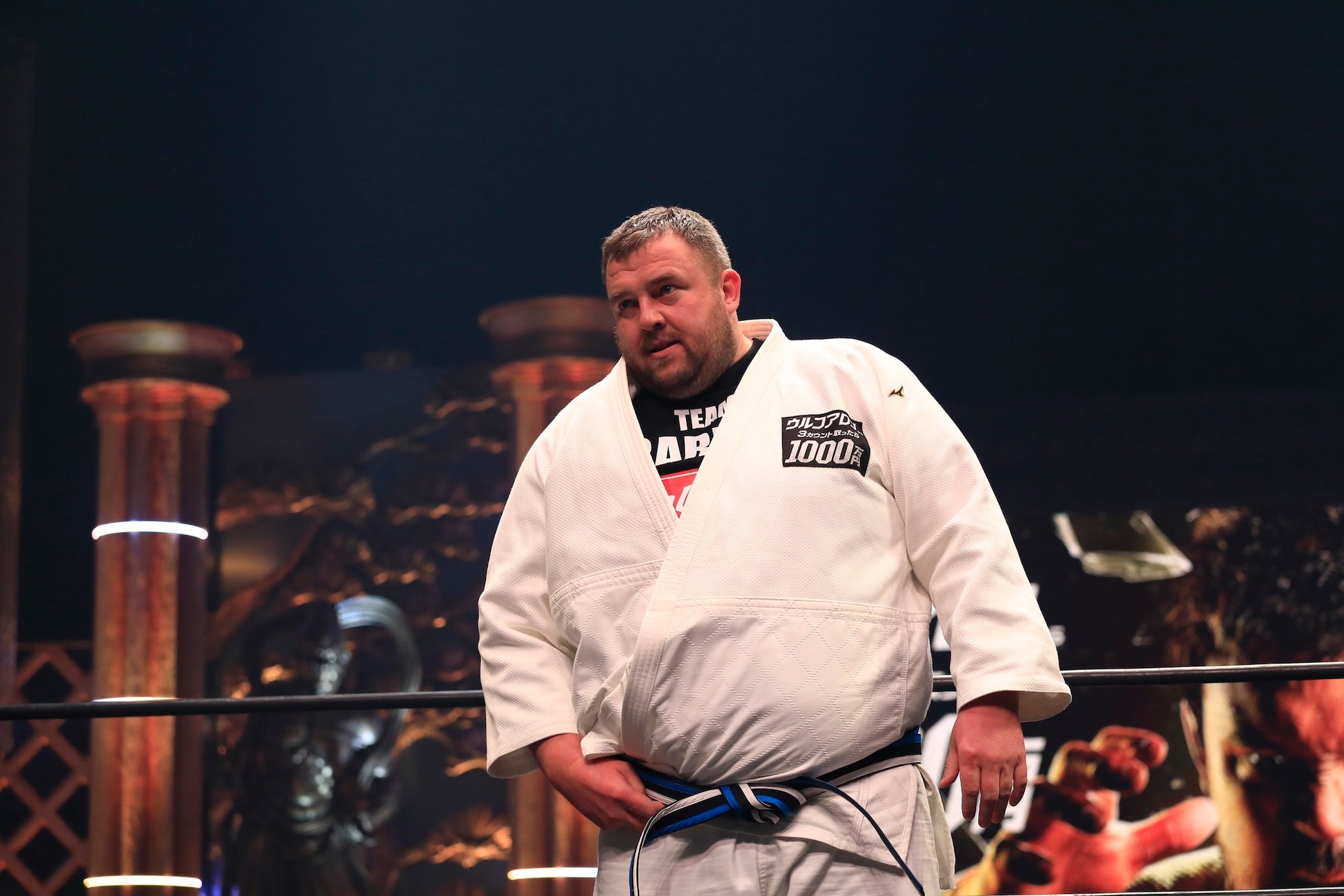 続いて登場したのは、身長197cm・体重200kgの元大関・把瑠都。規格外の体格とパワーを誇る相手に、試合は開始直後から激しいぶつかり合いとなります。突進する把瑠都に対し、ウルフは距離を保ちながら冷静に対応。フェイントで隙を生み出すと、開始から43秒で得意の大内刈りを決め一本勝ち。圧巻の決着に会場は大きく沸きました。