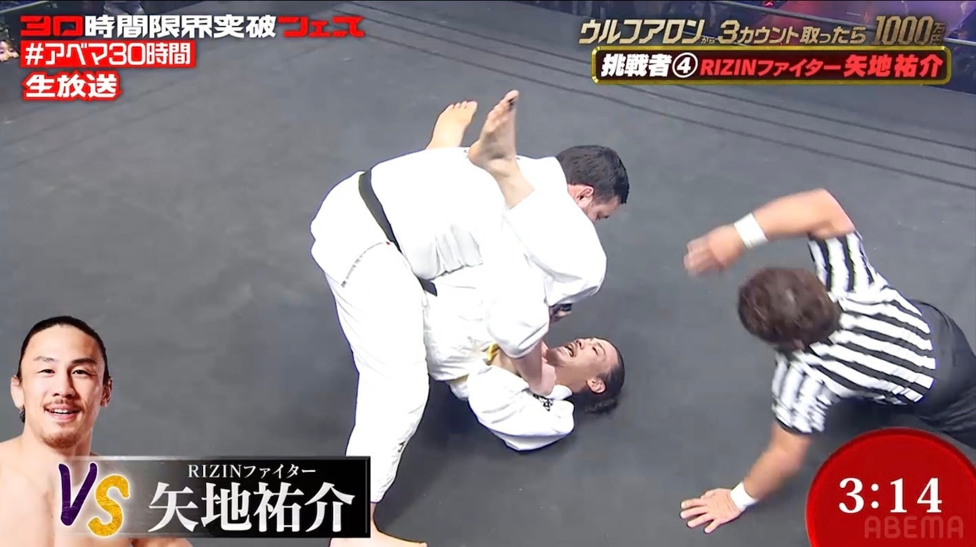 「ABEMA」開局10周年記念の特別番組『30時間限界突破フェス』の目玉企画『ウルフアロンから3カウント取ったら1000万円』は無料配信中!