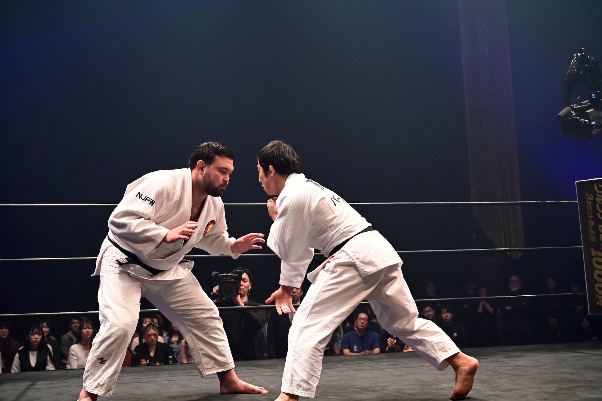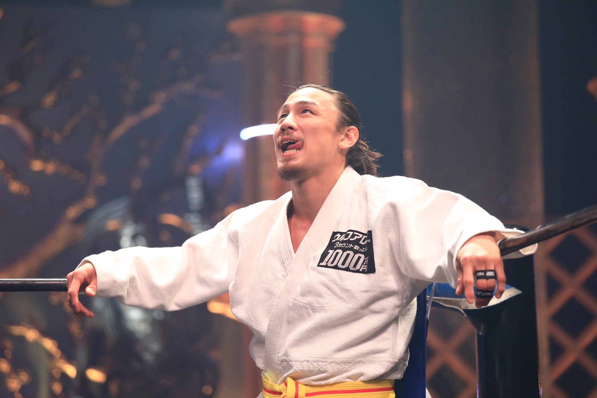 まず登場したのは、MMAファイター・矢地祐介。中学の先輩後輩という関係性を持つ両者ですが、試合前、矢地は「これじゃただの柔道じゃねーか」とマイクを握り、ここでルール変更を要求。これを受けたウルフも「プロレス技も見せたい」と応じ、急遽、以降の試合は“締め技・関節技(腕まで)あり”のルールで試合が行われる異例の展開となりました。