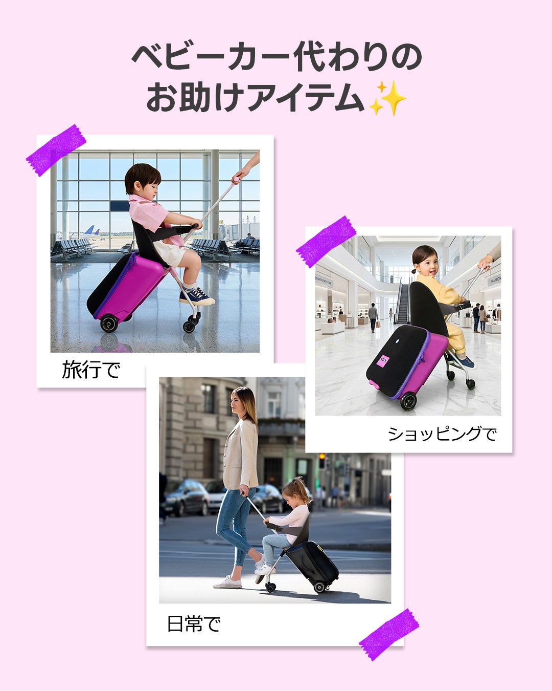 単なるキャリーケースではなく、「子どもが乗る乗用玩具」としての構造と安全性を前提に開発されている。