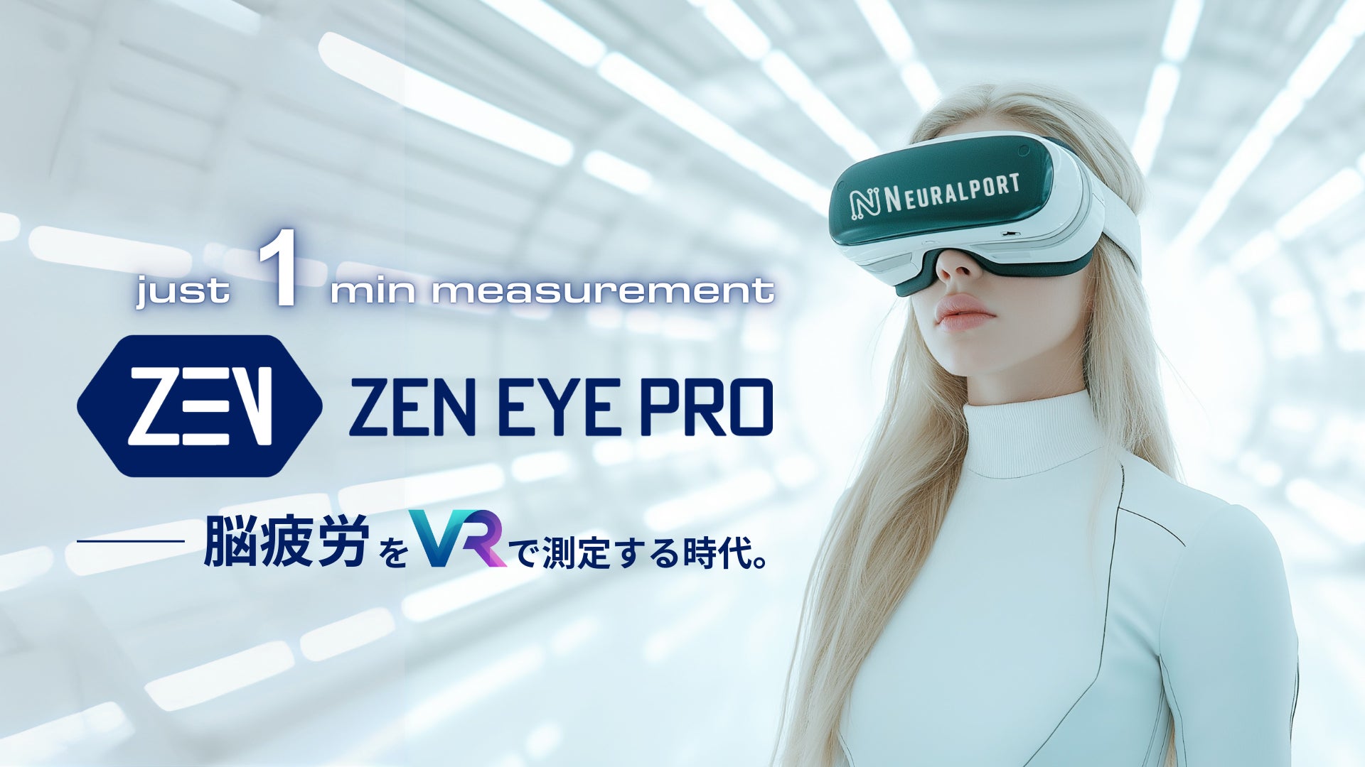 ZEN EYE Proは、視線計測型VRを活用し、わずか1分で脳疲労(中枢性疲労)と自律神経系疲労を同時に数値化できるシステム。視線の動きや瞳孔反応を計測することで、非侵襲かつ客観的に脳疲労レベルを評価する。