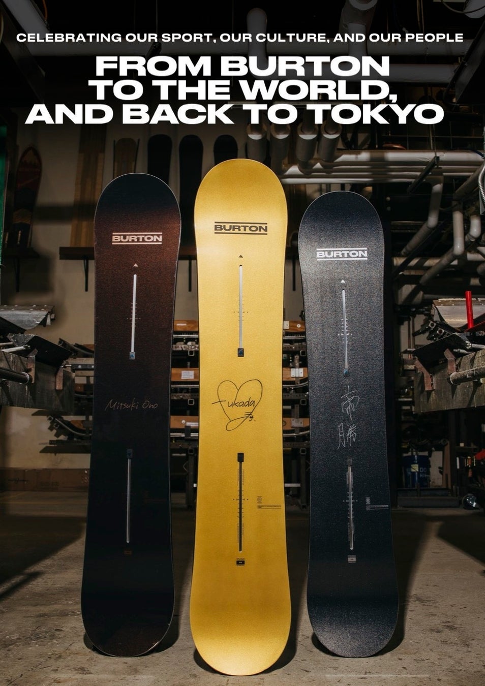 Burtonは、チームライダーである深田茉莉・長谷川帝勝・小野光希の、今シーズンの活躍を讃える特別なカラーの「セレブレーション・スノーボード」を、4月14日(火)より、 Burtonフラッグシップストア東京、Burtonストア神田、及びBurton.comにて販売開始いたします。