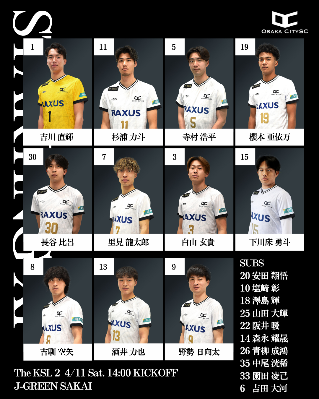 このたび、Osaka City SCは、4/11(土)に行われた「第61回 The KSLアストエンジ 関西サッカーリーグ Division2」において、関大FC2008と対戦し4-0で勝利。次戦は、4/18(土)となります。