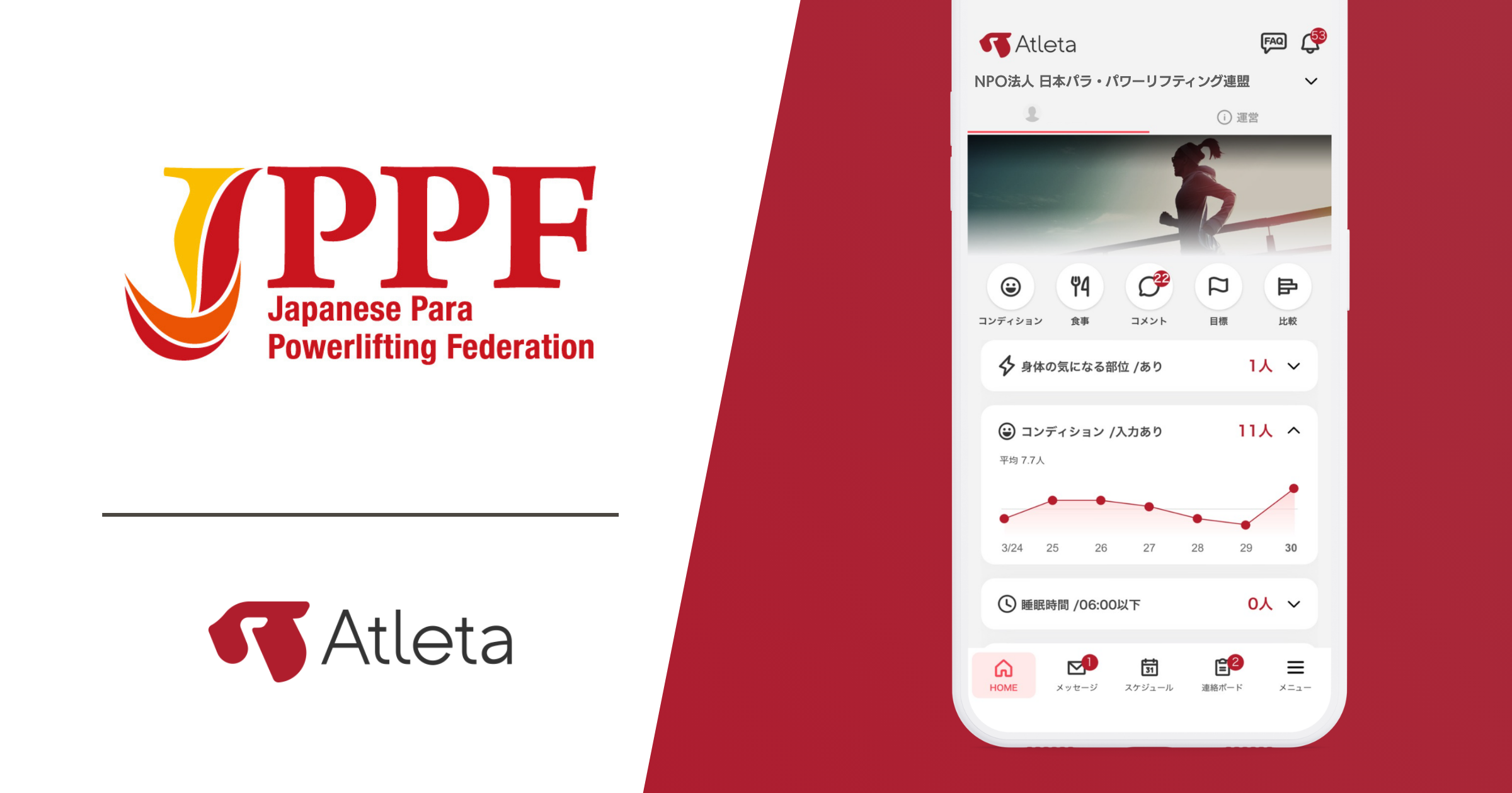 こうした背景を踏まえ、日本パラ・パワーリフティング連盟では、選手のコンディション管理やトレーニング状況の共有を行うデジタル基盤として「Atleta」を導入しました。