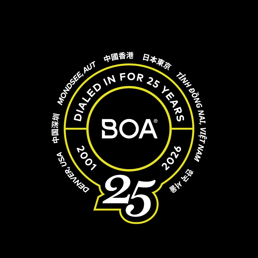 BOA®フィットシステムの開発元であるBOA® Technology社は、今年創立25周年を迎えます。革新、コラボレーション、そしてパフォーマンスを基盤としたこの節目を記念します。その歩みは2001年、創業者ゲイリー・ハマーラグがスノーボードブーツの機能性、フィット感、そしてパフォーマンスのあり方を根本から見直そうとしたことから始まりました。現在、BOA®は従業員約300名を擁するグローバル企業となり、米国コロラド州デンバーに本社を構え、ヨーロッパ、アジア各地にも拠点を置くチームが活躍しています。