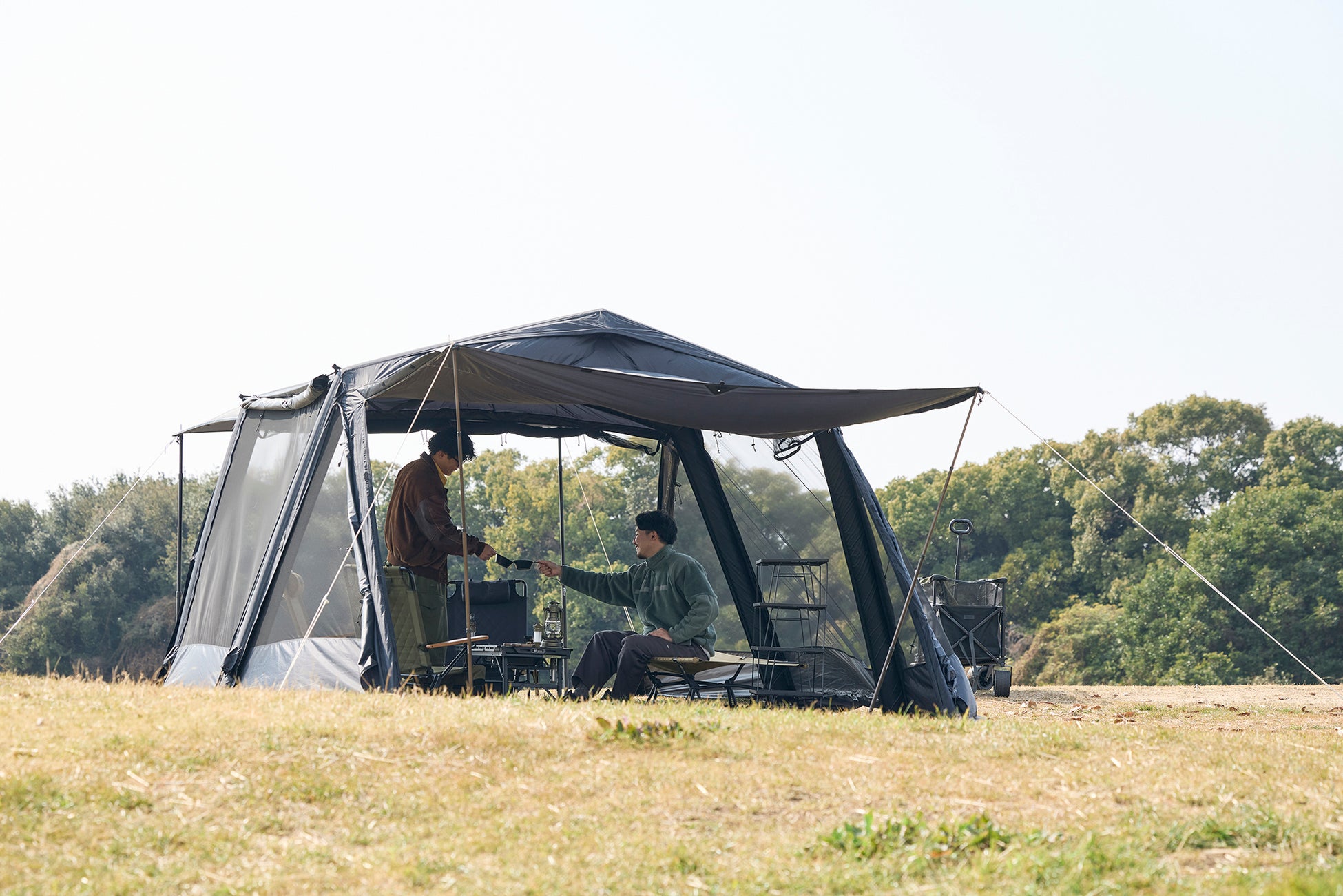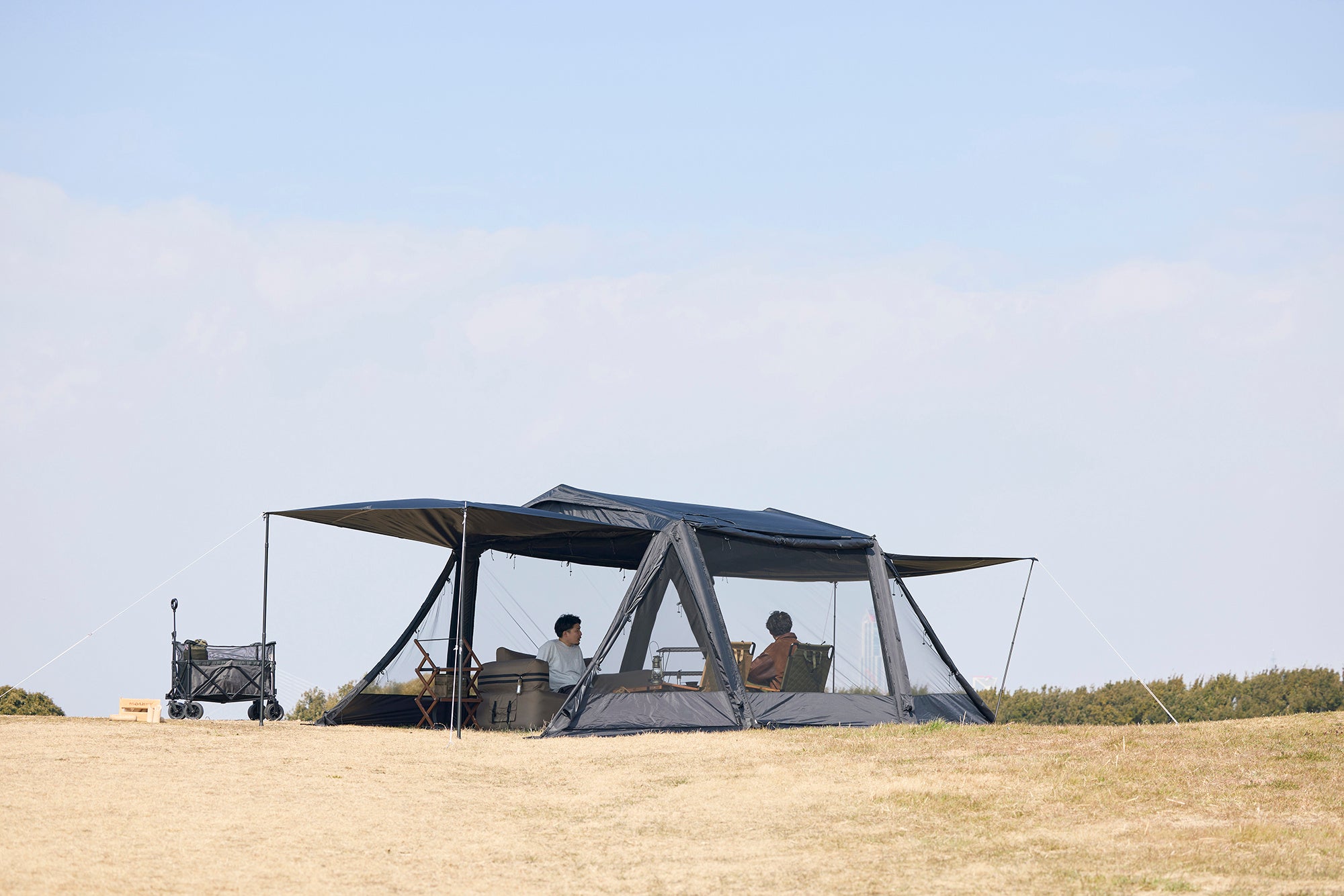 【Point 2】360°フルオープン可能な大型シェルターテント