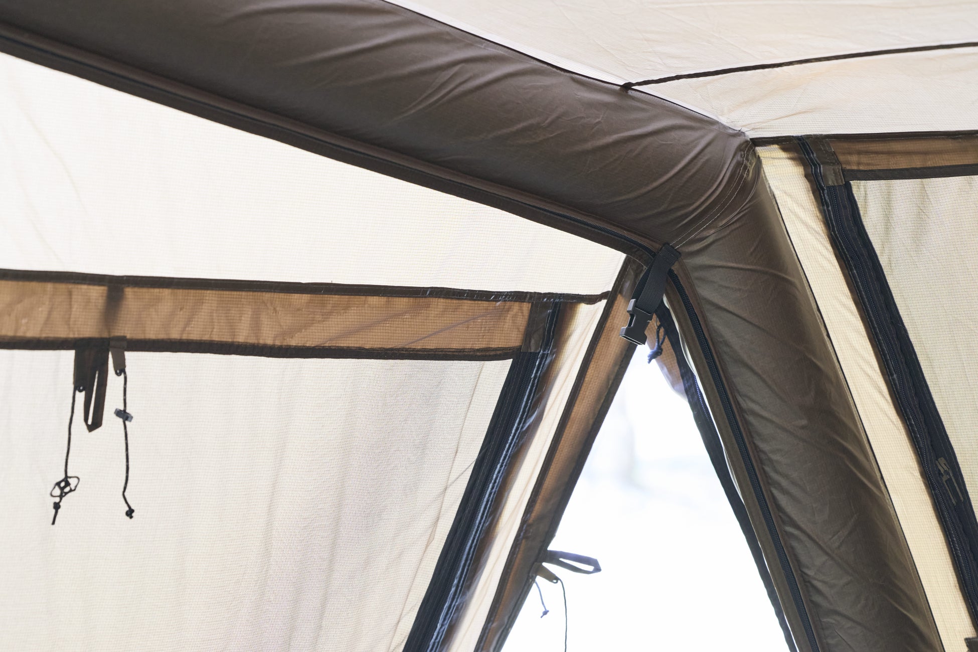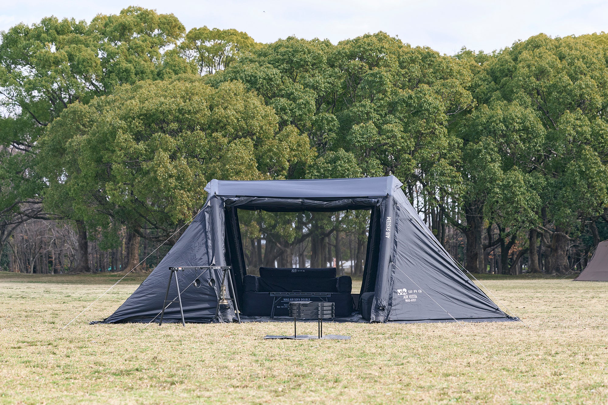 快適な居住空間と、空気で立ち上がるエアフレーム構造を備えた新型エアテントが登場。