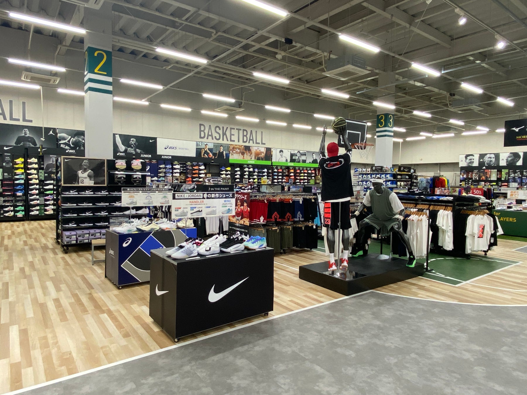リニューアルオープンに合わせて、ナイキ、ジョーダンの取扱品番数が拡大。アパレルでは、部活生に