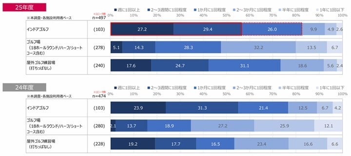 ■このように高頻度で利用されている背景として、インドアゴルフはサブスクリプション型(会員制)が 主流であることに加え、上達志向が高い“熱量の高いゴルファー”が多く利用している可能性が考えられます。
