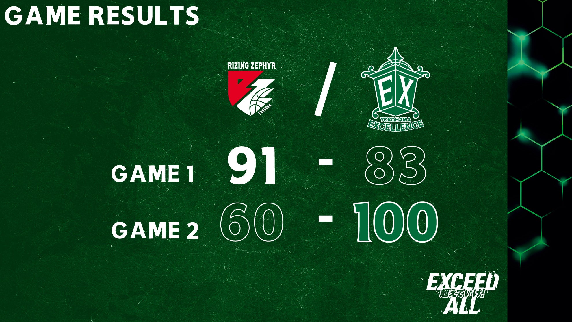 Game2:⚪︎福岡 60―100 横浜EX(勝利)