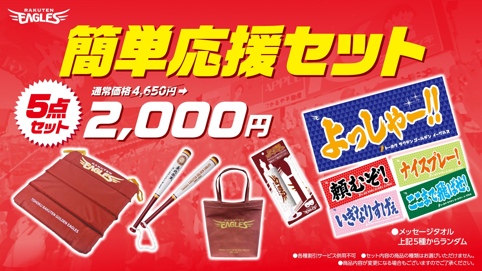 応援にかかせないアイテムのセットを、通常価格4,650円のところ2,000円で販売します。