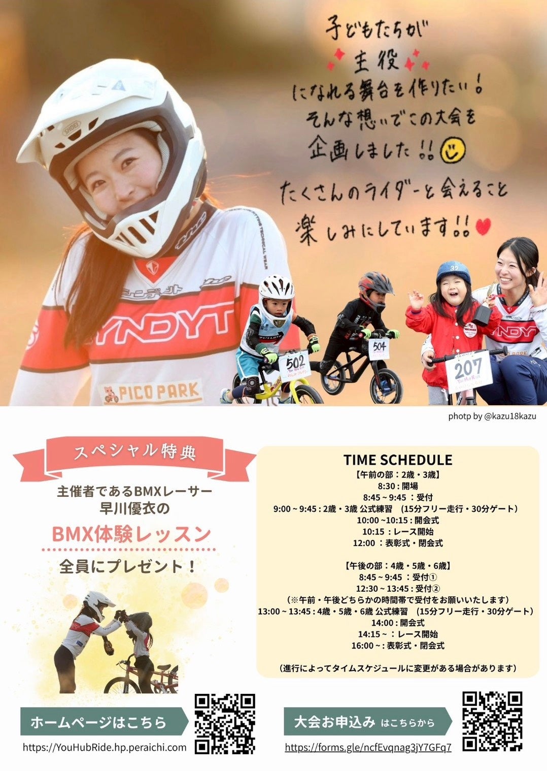 ・参加できる車両は12インチのキックバイク(ペダル・ブレーキのない車両に限る)