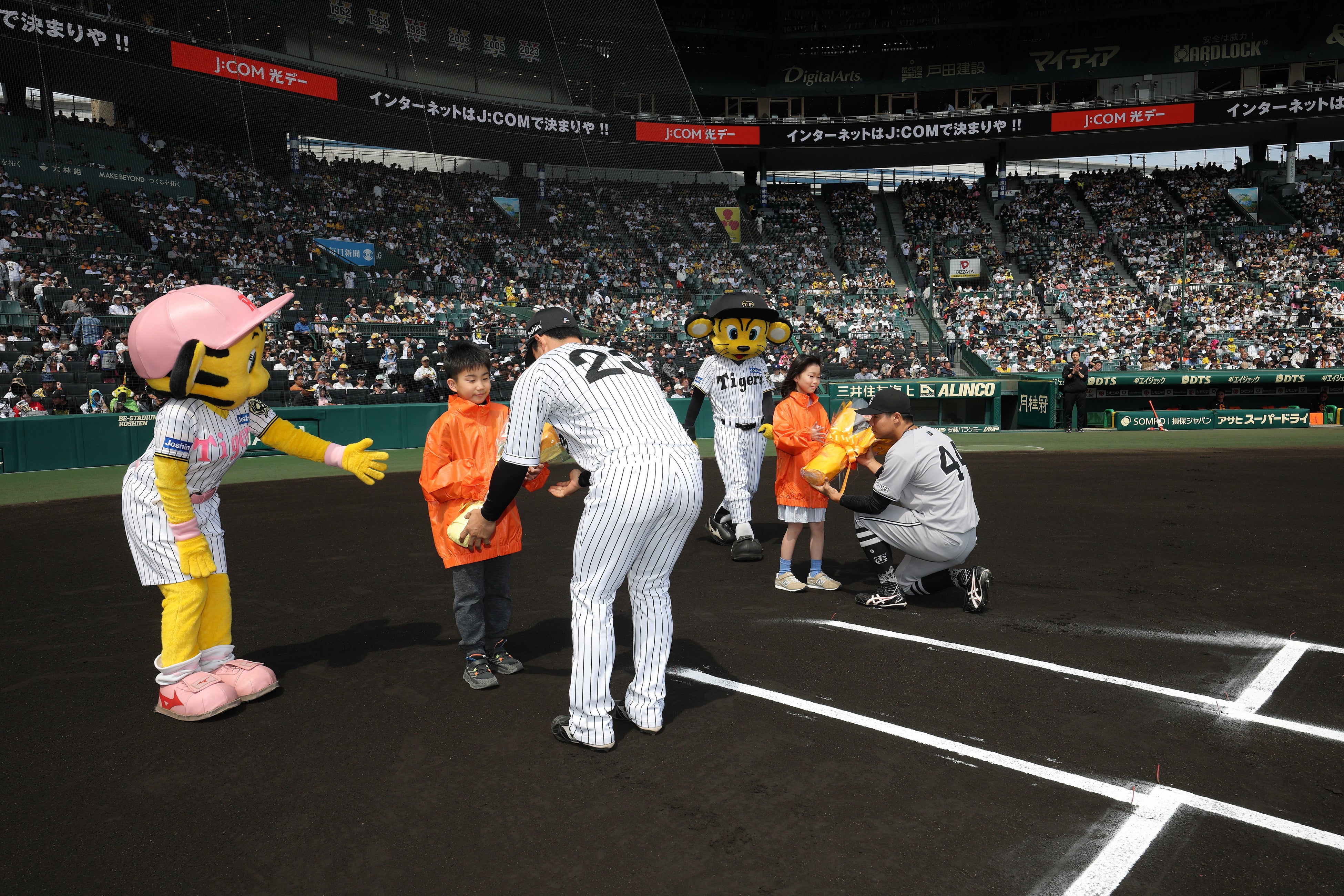 当日は、子どもたちへスポーツをきっかけとしたエンタテインメントに触れる機会を創出するため、事前に選ばれた小学生による阪神タイガース選手への花束贈呈、イニング間イベントへの参加を予定しています。また、球場外周のJ:COMブースでは、「MY J:COM アプリ」をその場でダウンロードすると「J:COM×阪神タイガースオリジナルノベルティ」や「阪神タイガース公式グッズ」等を抽選でプレゼントします。他にも、当日のJ:COMブースや球場入場門で配布するJ:COMのご案内に記載のアンケートに回答すると、「阪神タイガース公式グッズ」等が抽選で当たるキャンペーンも実施します。