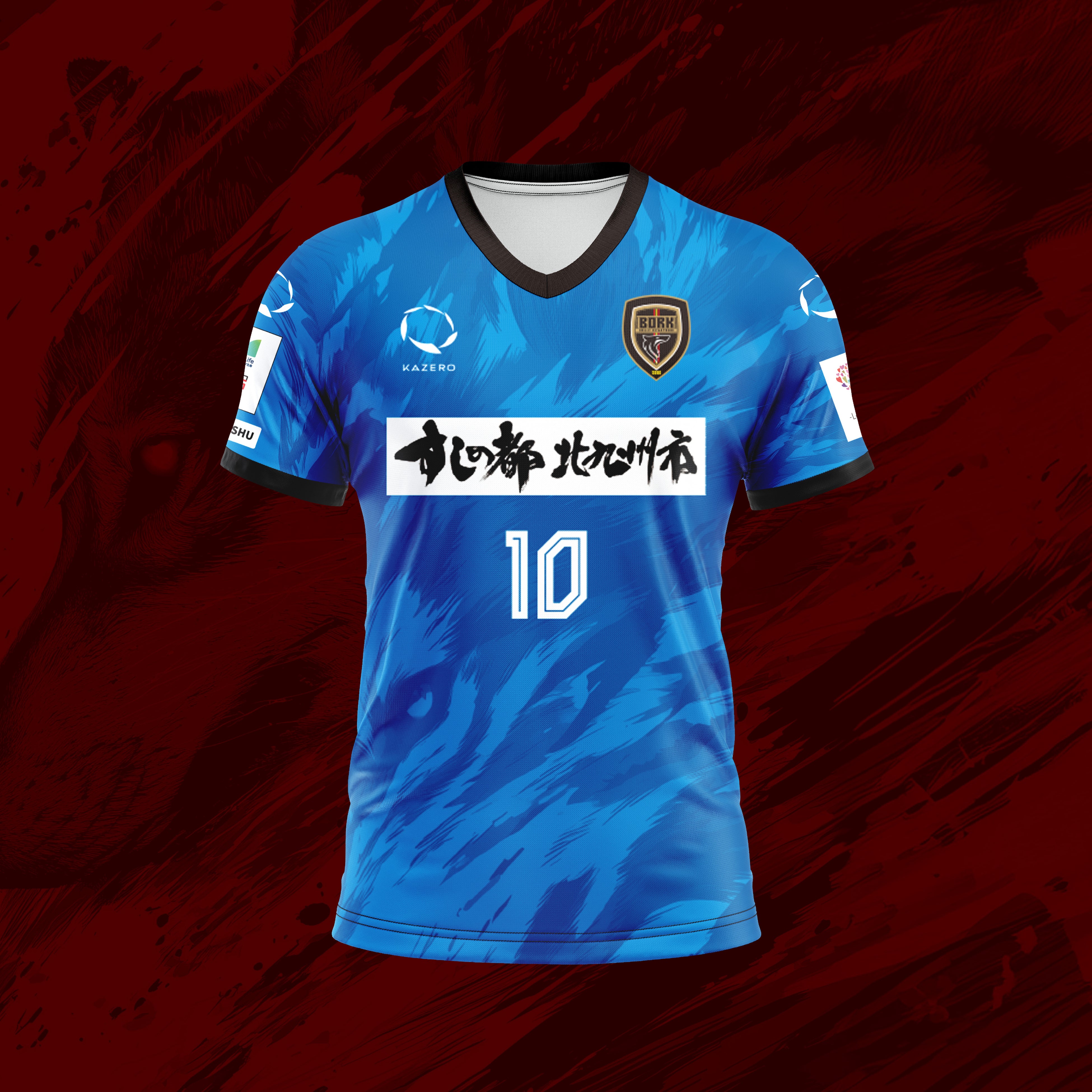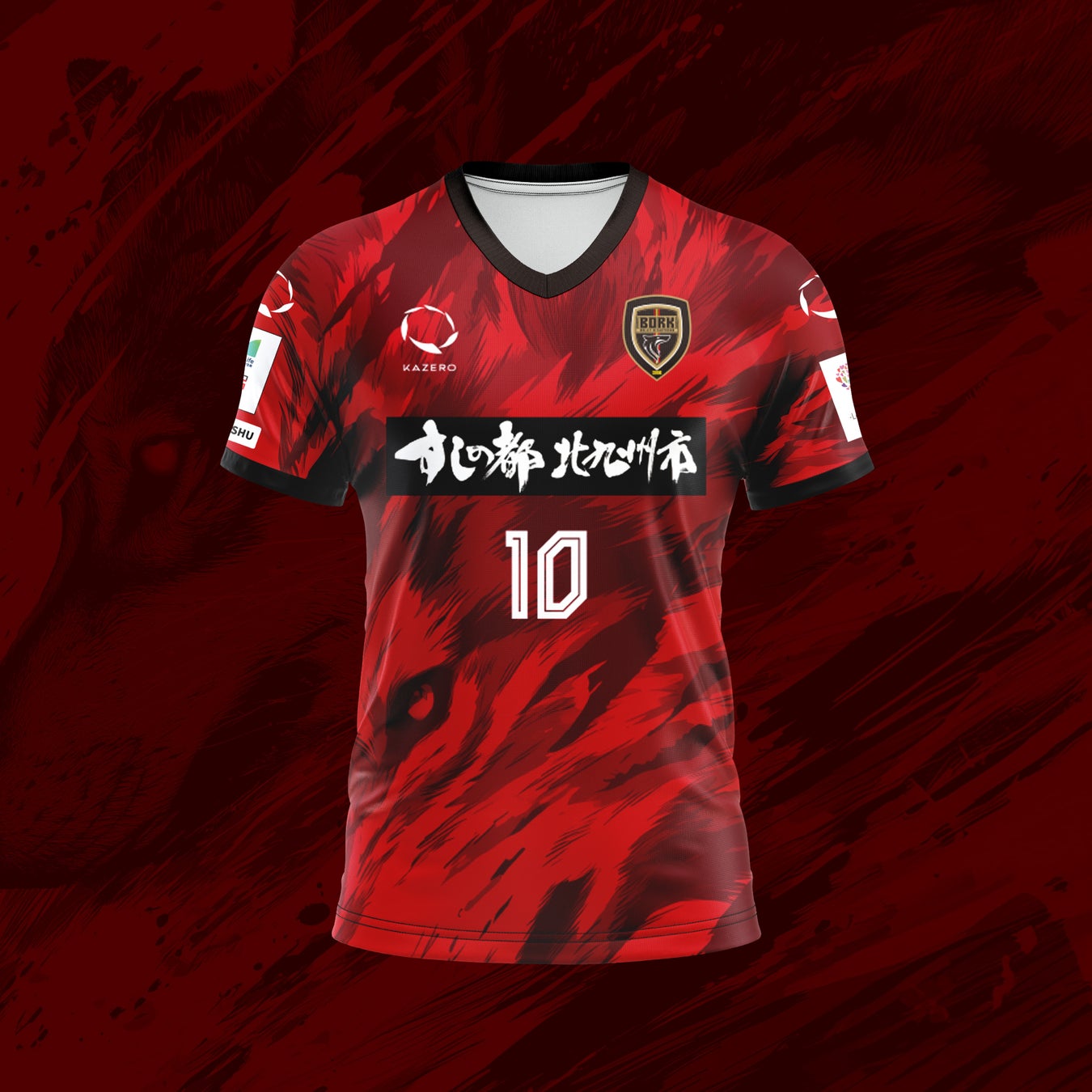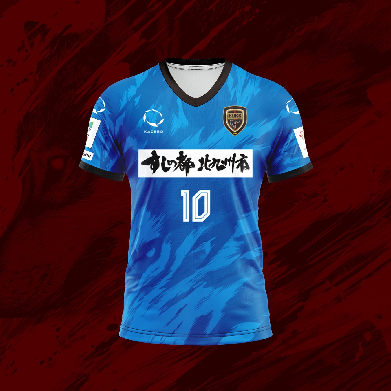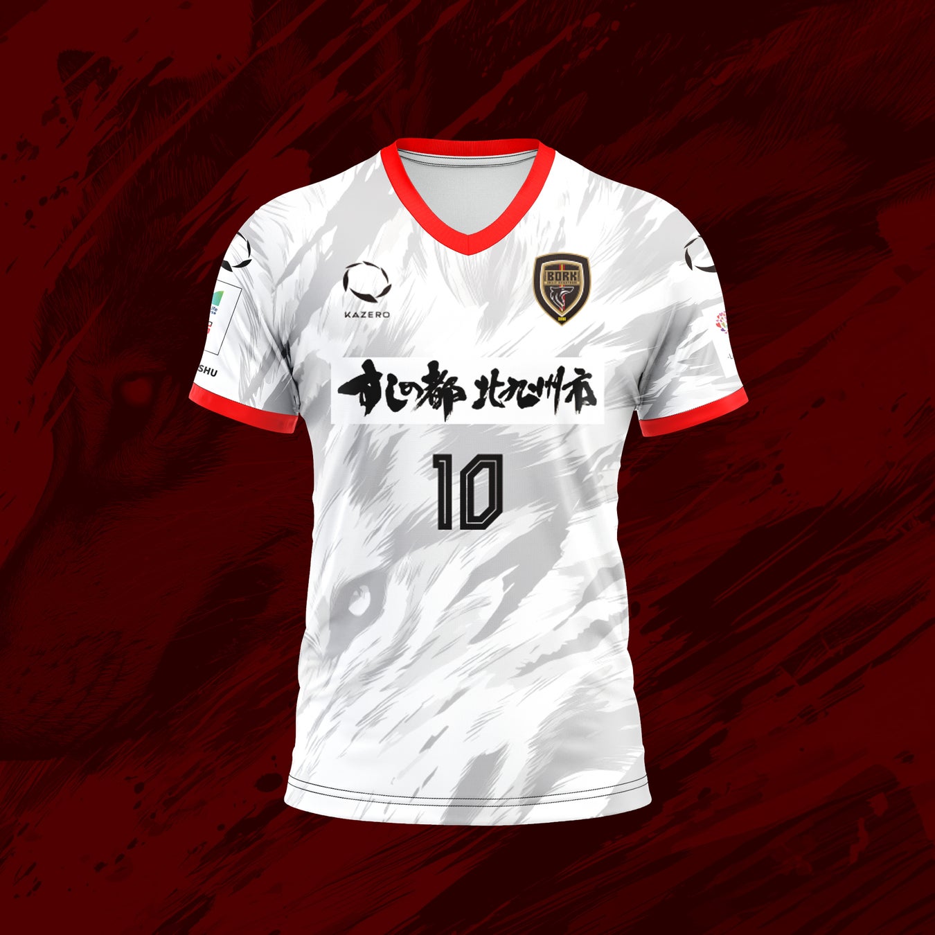ユニフォームには、風になびく体毛をイメージした狼の横顔をモチーフとして取り入れ、頂点捕食者としての力強さと躍動感を表現。背面下部には北九州市の旧五市を表す5本のラインを配置し、地域とのつながりを象徴しています。さらに、背番号にはサイバー風フォントを採用し、「Origin & Innovation(原点と革新)」のテーマのもと、20年の歴史と未来への進化を融合させました。