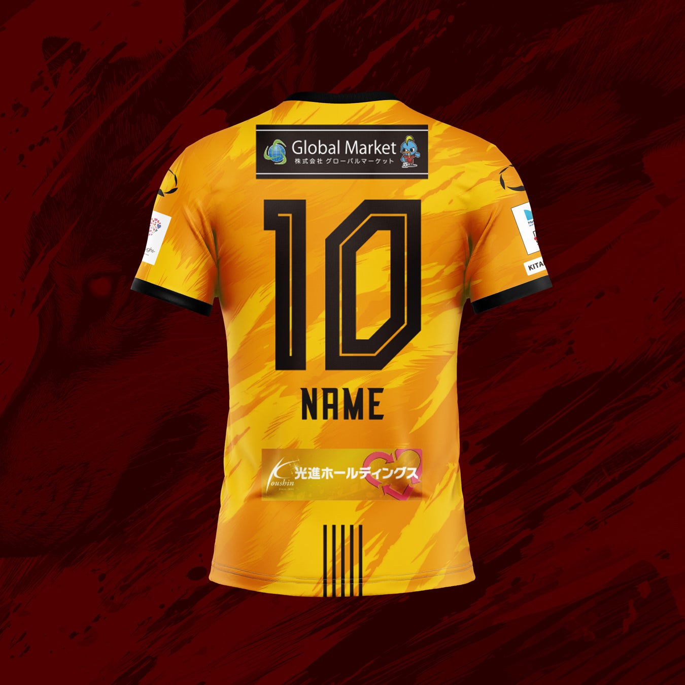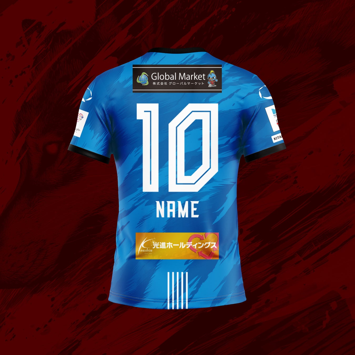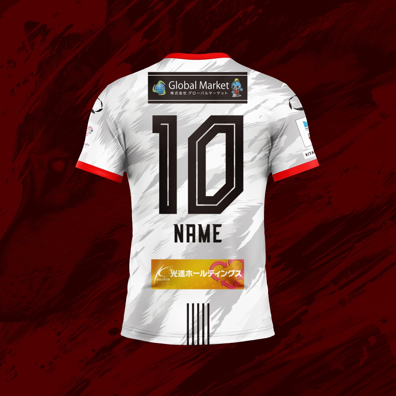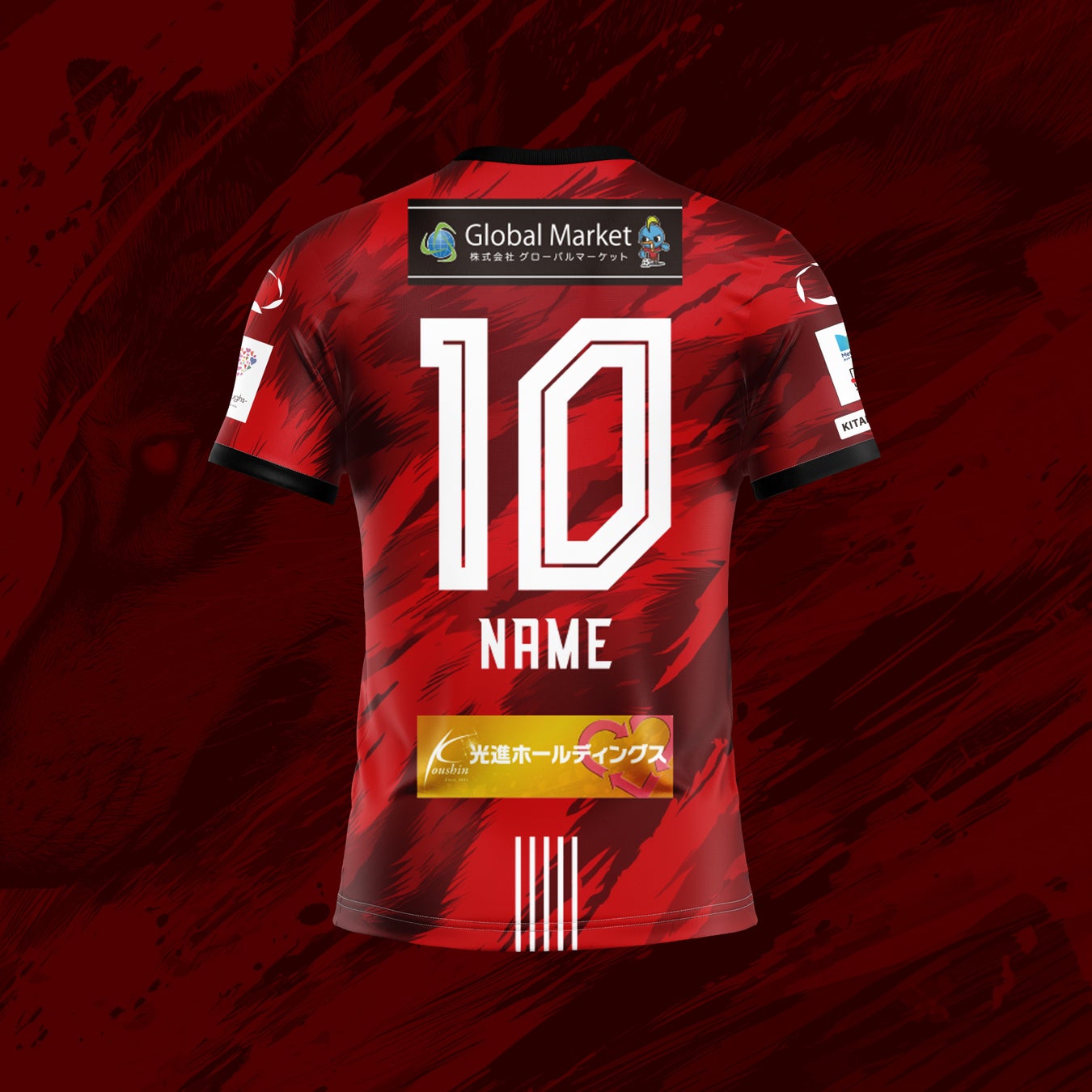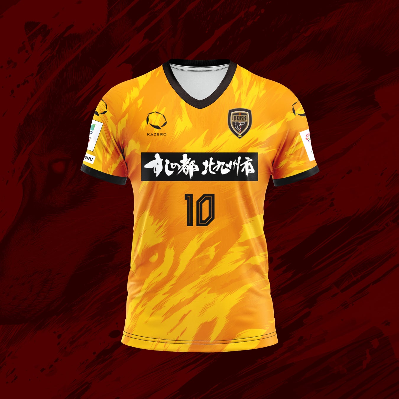 ユニフォームには、風になびく体毛をイメージした狼の横顔をモチーフとして取り入れ、頂点捕食者としての力強さと躍動感を表現。背面下部には北九州市の旧五市を表す5本のラインを配置し、地域とのつながりを象徴しています。さらに、背番号にはサイバー風フォントを採用し、「Origin & Innovation(原点と革新)」のテーマのもと、20年の歴史と未来への進化を融合させました。