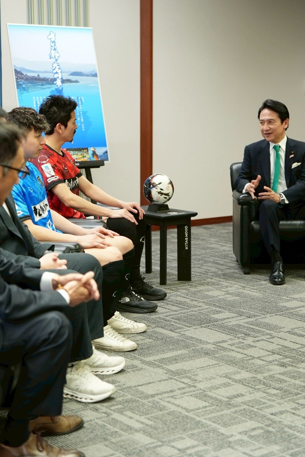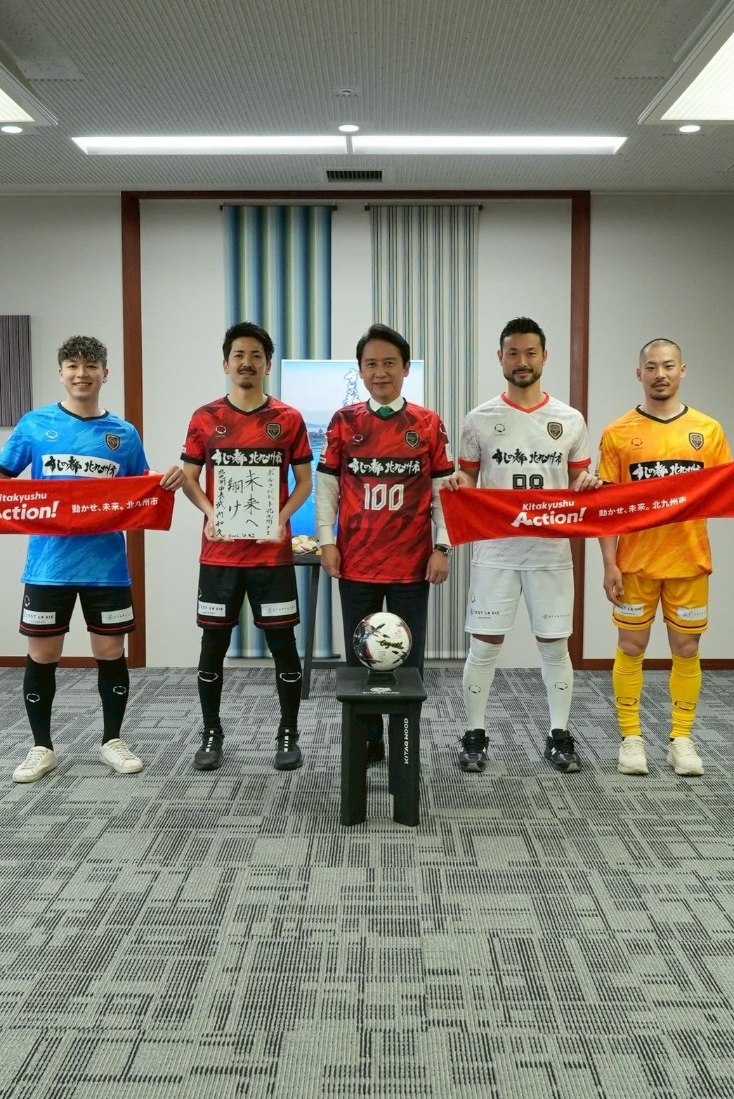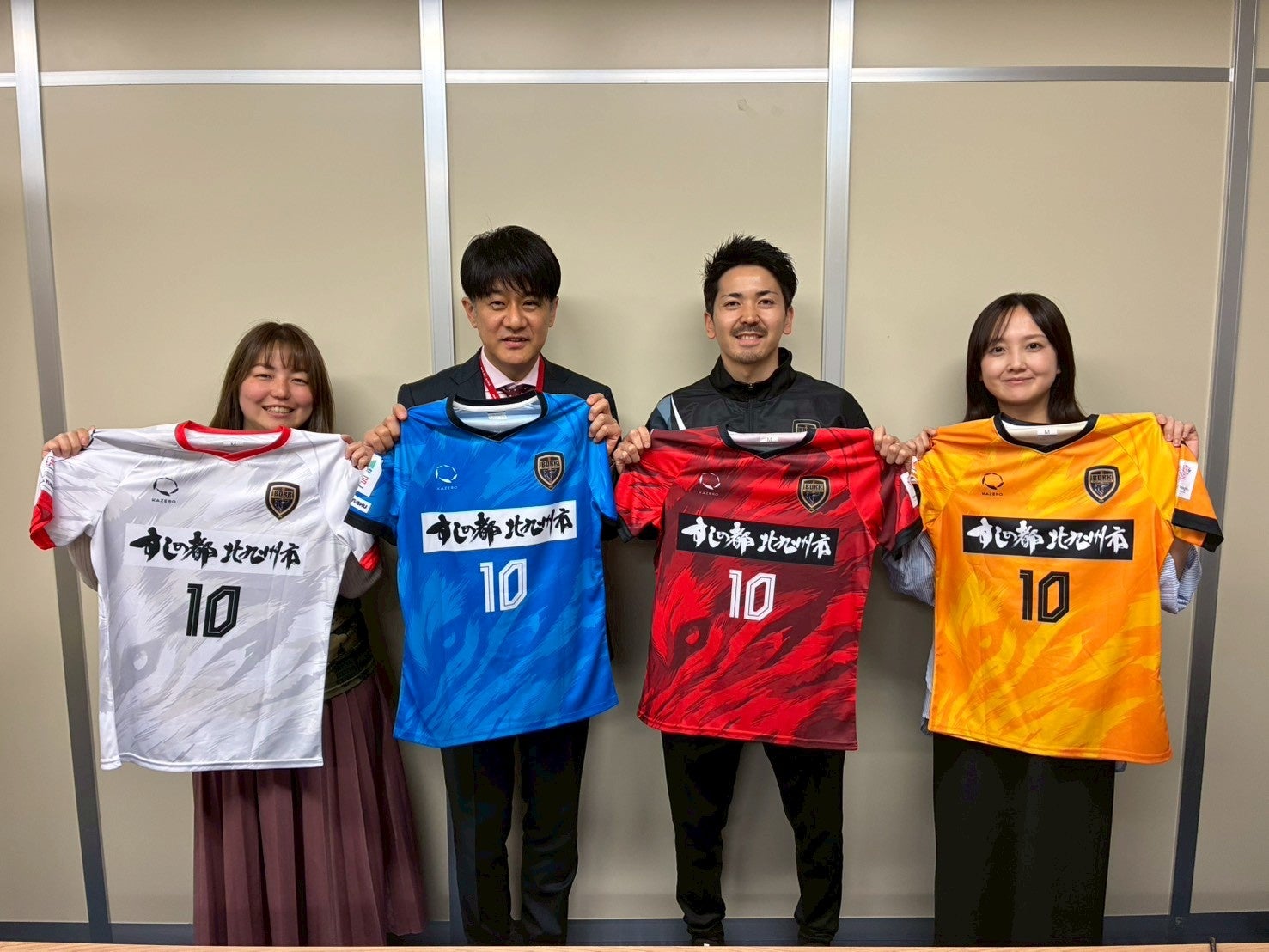 試合だけでなく、市内のさまざまな祭りやイベントで活躍されている選手の皆さんが、このユニフォームを身にまとい、北九州はもとより県外での試合や活動を通じて、子どもたちに夢と希望を届け、地域に元気をもたらしてくださることを心より期待しております。】