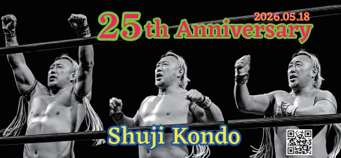 近藤修司選手は、2001年5月18日にデビューし、今年でキャリア25周年を迎えるベテランプロレスラーです。闘龍門、DRAGON GATE、全日本プロレス、WRESTLE-1、プロレスリング・ノアなど数々の団体で活躍し、「最凶キングコング」の異名で知られています。ジュニアヘビー級ながらヘビー級選手にも引けを取らないパワフルなファイトスタイルで多くのファンを魅了しています。現在はフリーとして様々な大会に参戦されているほか、女子プロレス団体の専属コーチとして後進の指導にもあたっています。