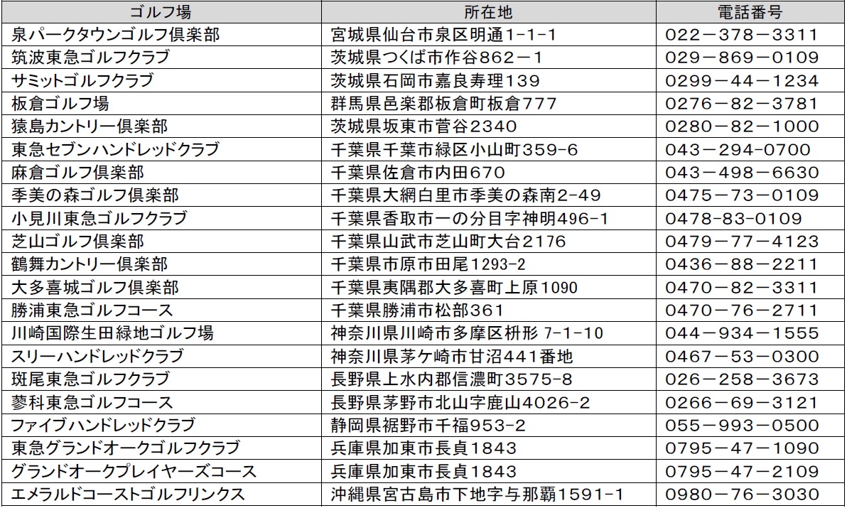 ○開催場所 東急グループ各社が運営する全国のゴルフ場21コース+特別会場3カ所