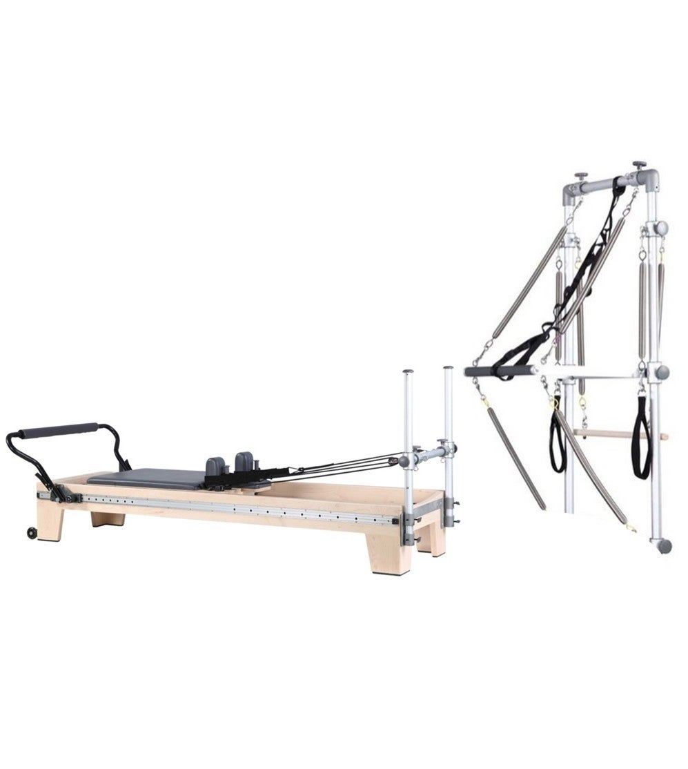リフォーマーとタワー機能を組み合わせ、全身のトレーニングから機能改善まで幅広く対応できるピラティスマシン。